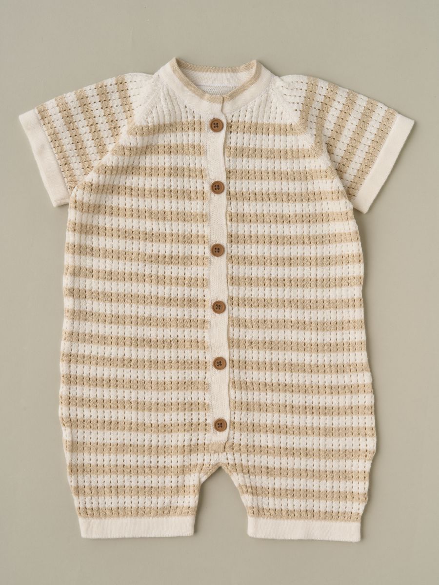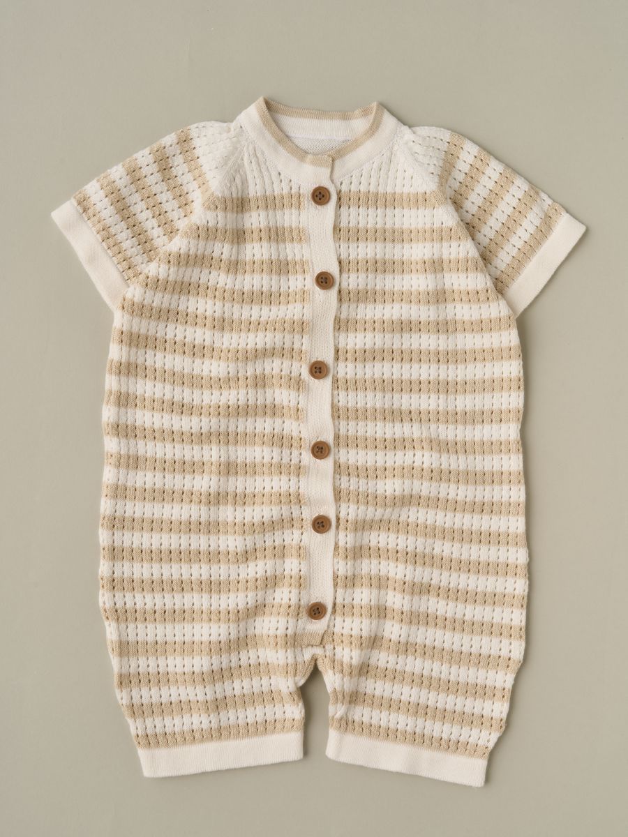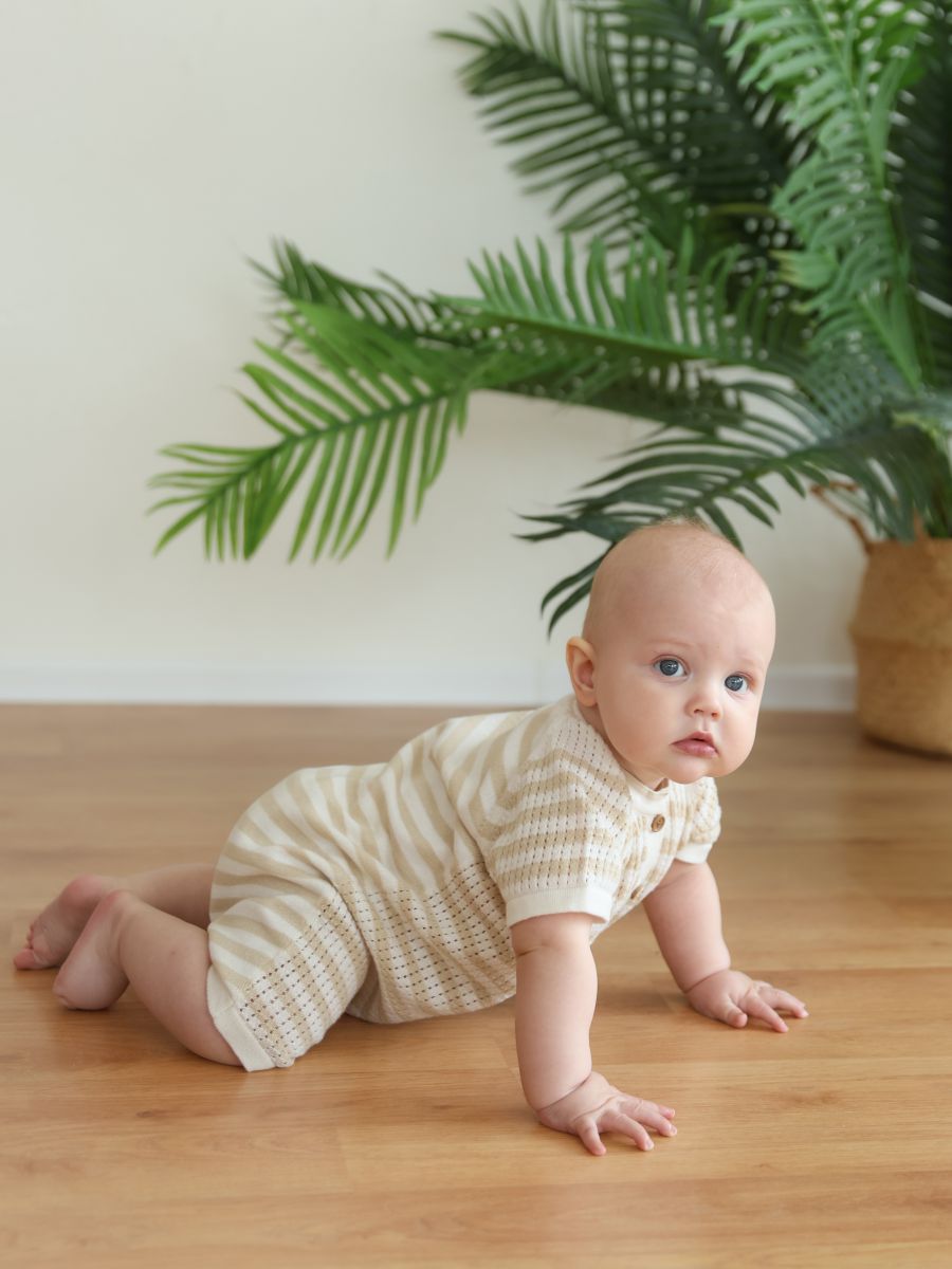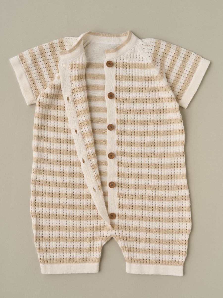 Вязаный песочник из 100% хлопка с ажурной перфорацией — тонкая, лёгкая и дышащая вещь для тёплого сезона. Воздушное трикотажное полотно мягко прилегает к коже, обеспечивая комфорт новорождённым и активным малышам. Удобная центральная планка на пуговицах помогает быстро переодеть ребёнка. Универсальный дизайн легко сочетается с базовыми вещами детского гардероба и отлично смотрится на прогулке, дома и на фотосессиях — отличный вариант и как практичный подарок.