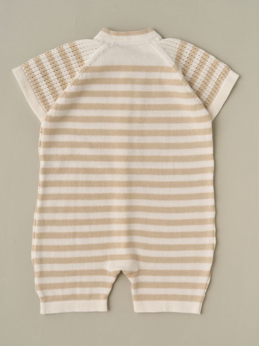 —0830 (ЧЗ-мз) Песочник вязаный "Полоска" (100% хлопок) Цв. Нат.кремовый+Бежевый