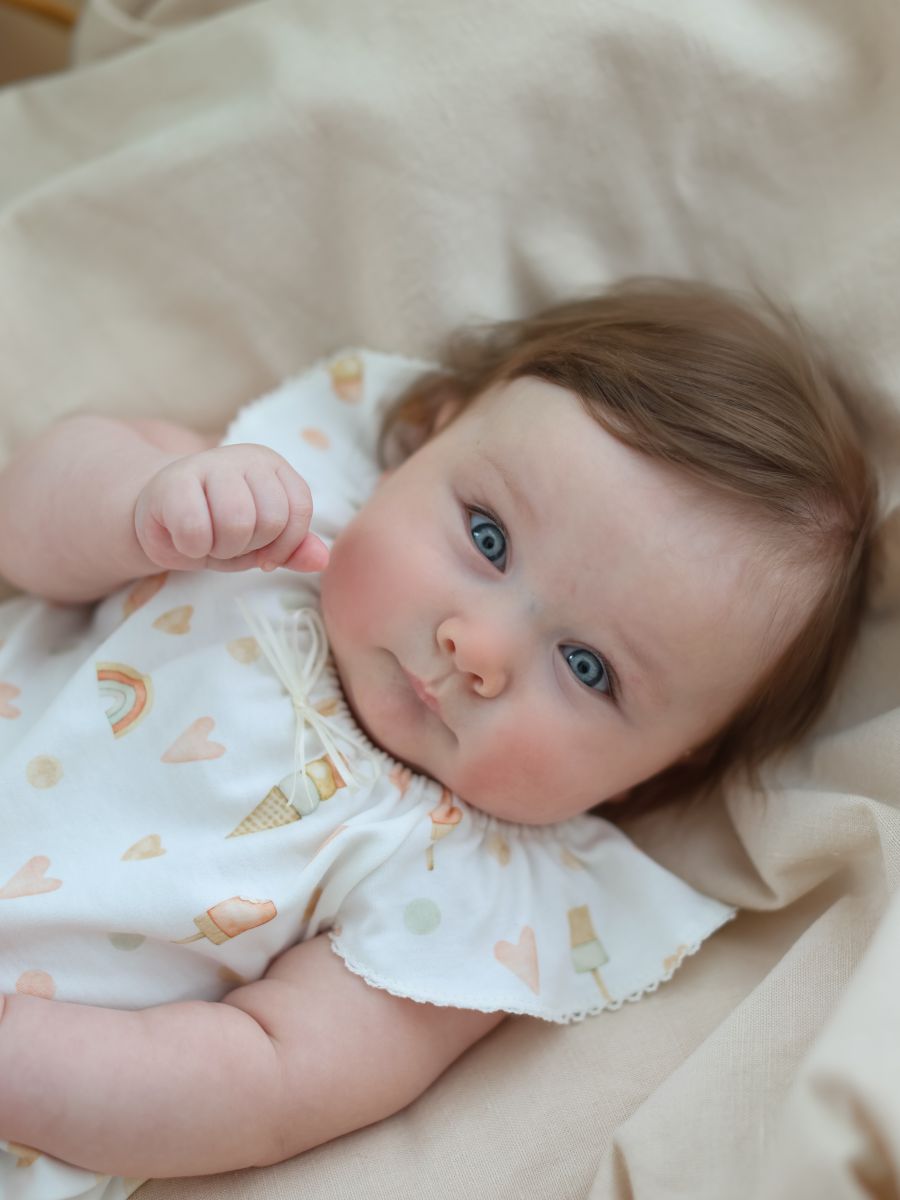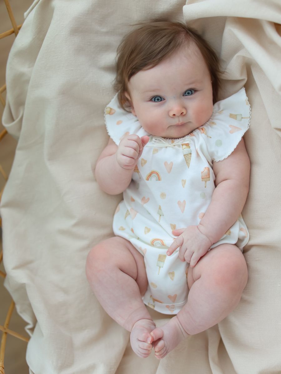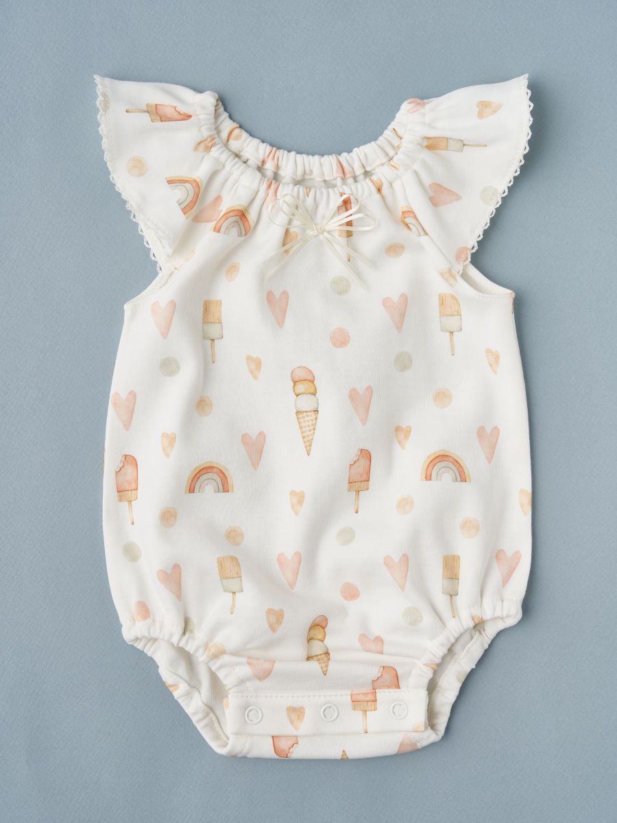 3732 (мз) Боди с крылышками "Мороженое, сердечки, шарики" (интерлок) цв. крем