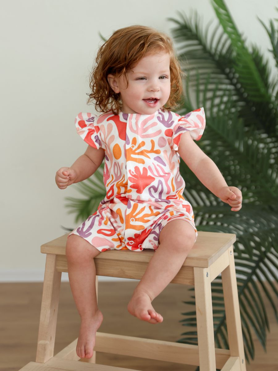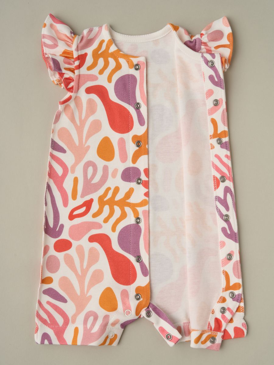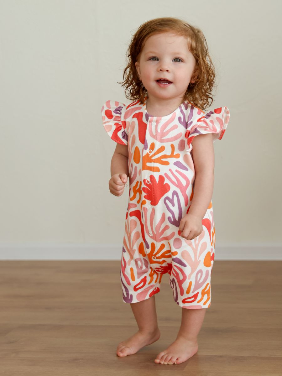 Трикотажный песочник для девочки, 100% хлопок с очаровательными рукавами-крылышками и застёжкой на кнопки по всей длине спереди. Натуральный мягкий трикотаж «дышит», быстро впитывает влагу и подходит для ежедневной носки дома, на прогулке и в поездках. Для этого артикула доступно много разных рисунков: аккуратный принт впечатан в ткань, не боится утюга, выдерживает множество стирок и не выцветает. В размере 62 выполнены швы наружу для максимального комфорта новорождённой кожи; с 68 по 92 размеры — швы внутри в классическом исполнении. Удобные кнопки между ножками помогают быстро сменить подгузник, свободный силуэт не стесняет движения. Ищете милый летний комбинезон для девочки из хлопка? Это удачный выбор как на каждый день, так и в подарок новорождённой.