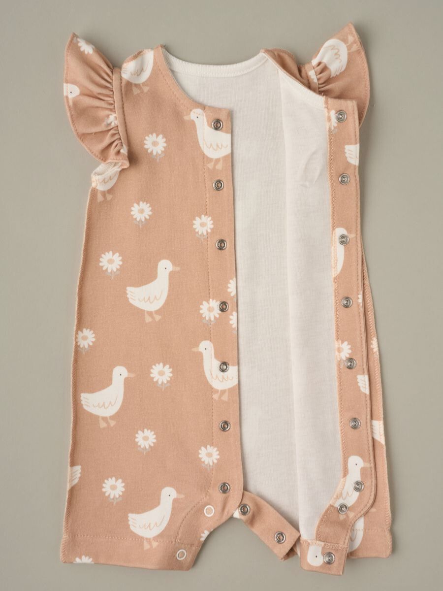 Трикотажный песочник для девочки, 100% хлопок с очаровательными рукавами-крылышками и застёжкой на кнопки по всей длине спереди. Натуральный мягкий трикотаж «дышит», быстро впитывает влагу и подходит для ежедневной носки дома, на прогулке и в поездках. Для этого артикула доступно много разных рисунков: аккуратный принт впечатан в ткань, не боится утюга, выдерживает множество стирок и не выцветает. В размере 62 выполнены швы наружу для максимального комфорта новорождённой кожи; с 68 по 92 размеры — швы внутри в классическом исполнении. Удобные кнопки между ножками помогают быстро сменить подгузник, свободный силуэт не стесняет движения. Ищете милый летний комбинезон для девочки из хлопка? Это удачный выбор как на каждый день, так и в подарок новорождённой.