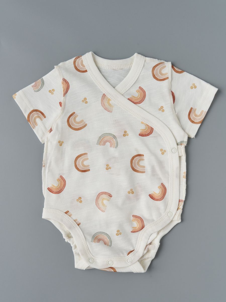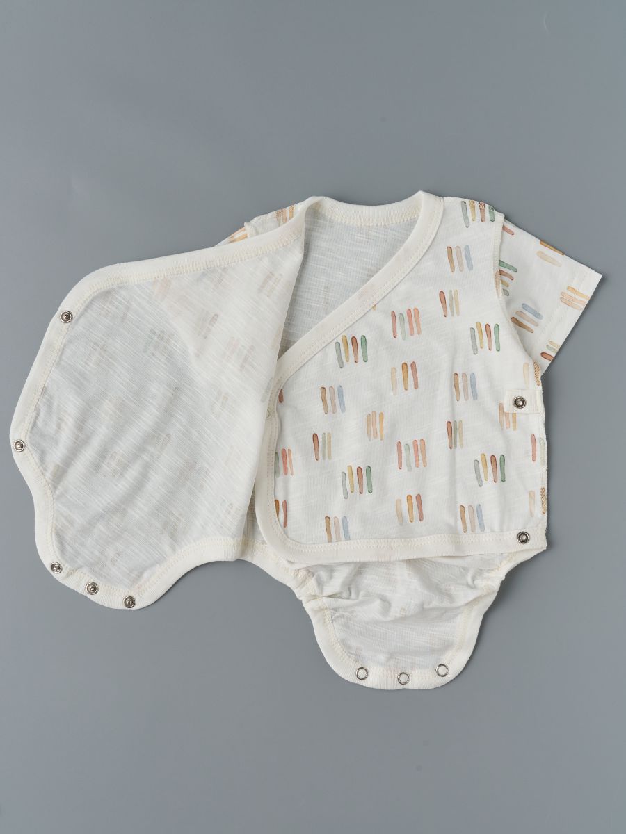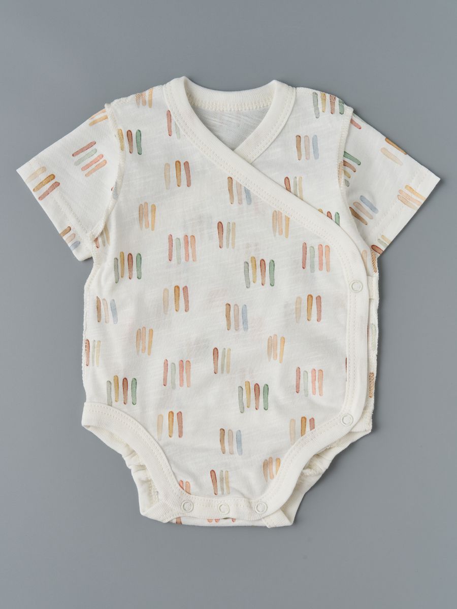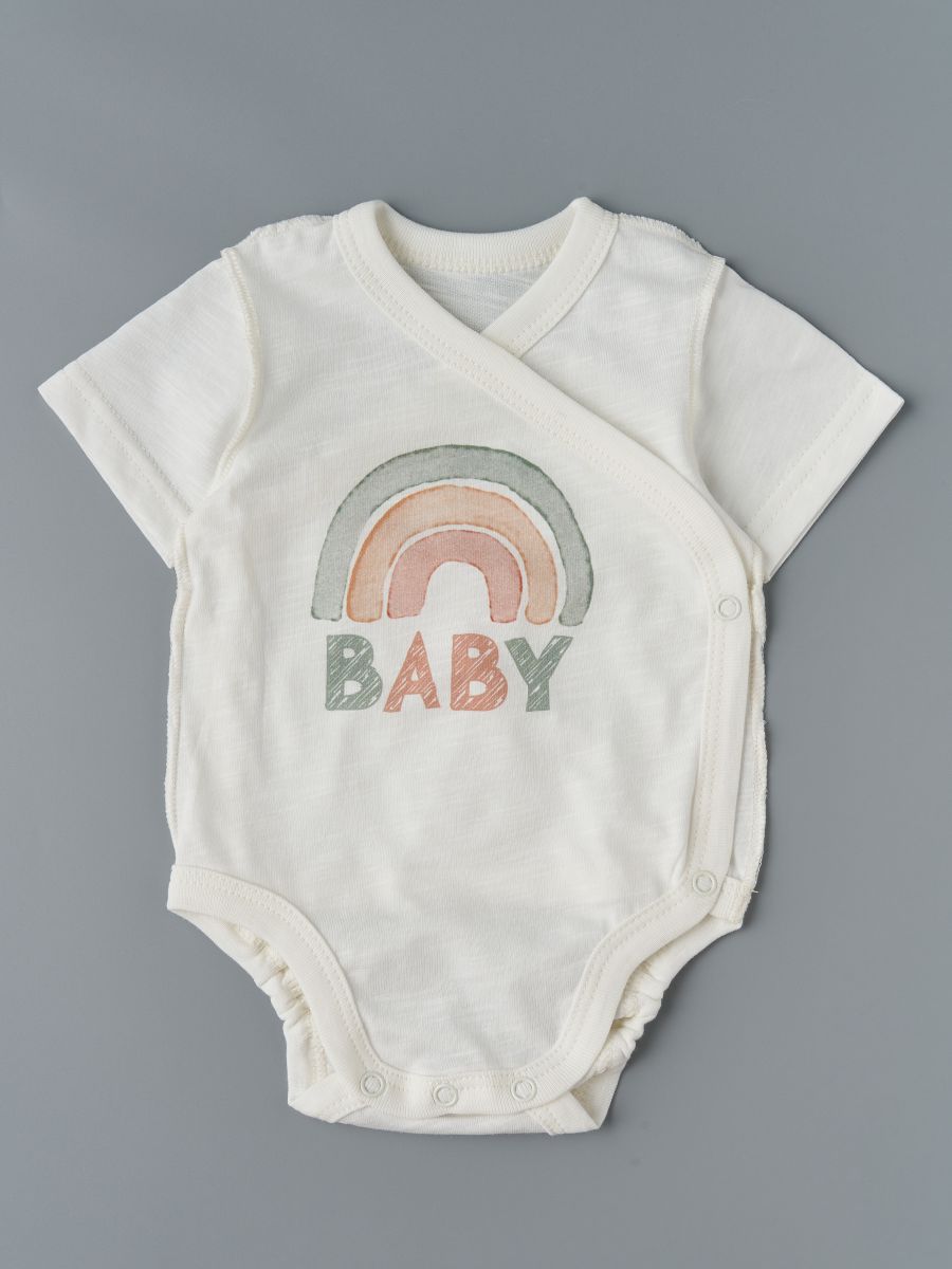 — Боди с коротким рукавом и запахом: удобно надевать, не тревожа малыша.