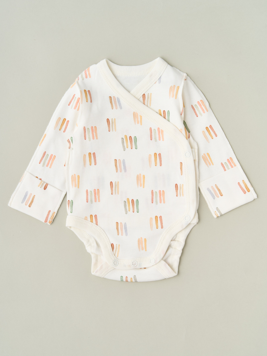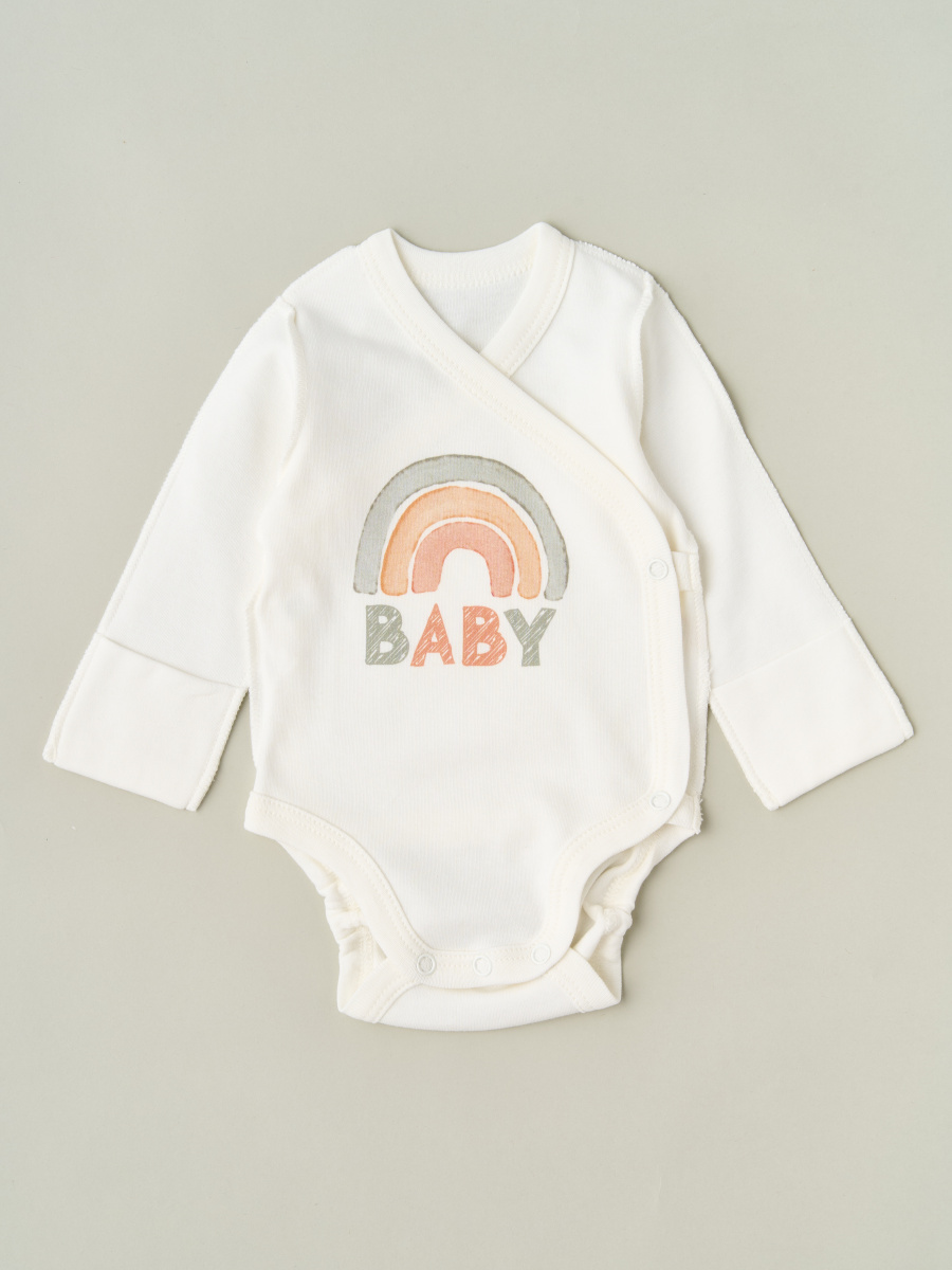 — Боди с запахом и на кнопках: удобно надевать, не тревожа малыша; прочная фурнитура.