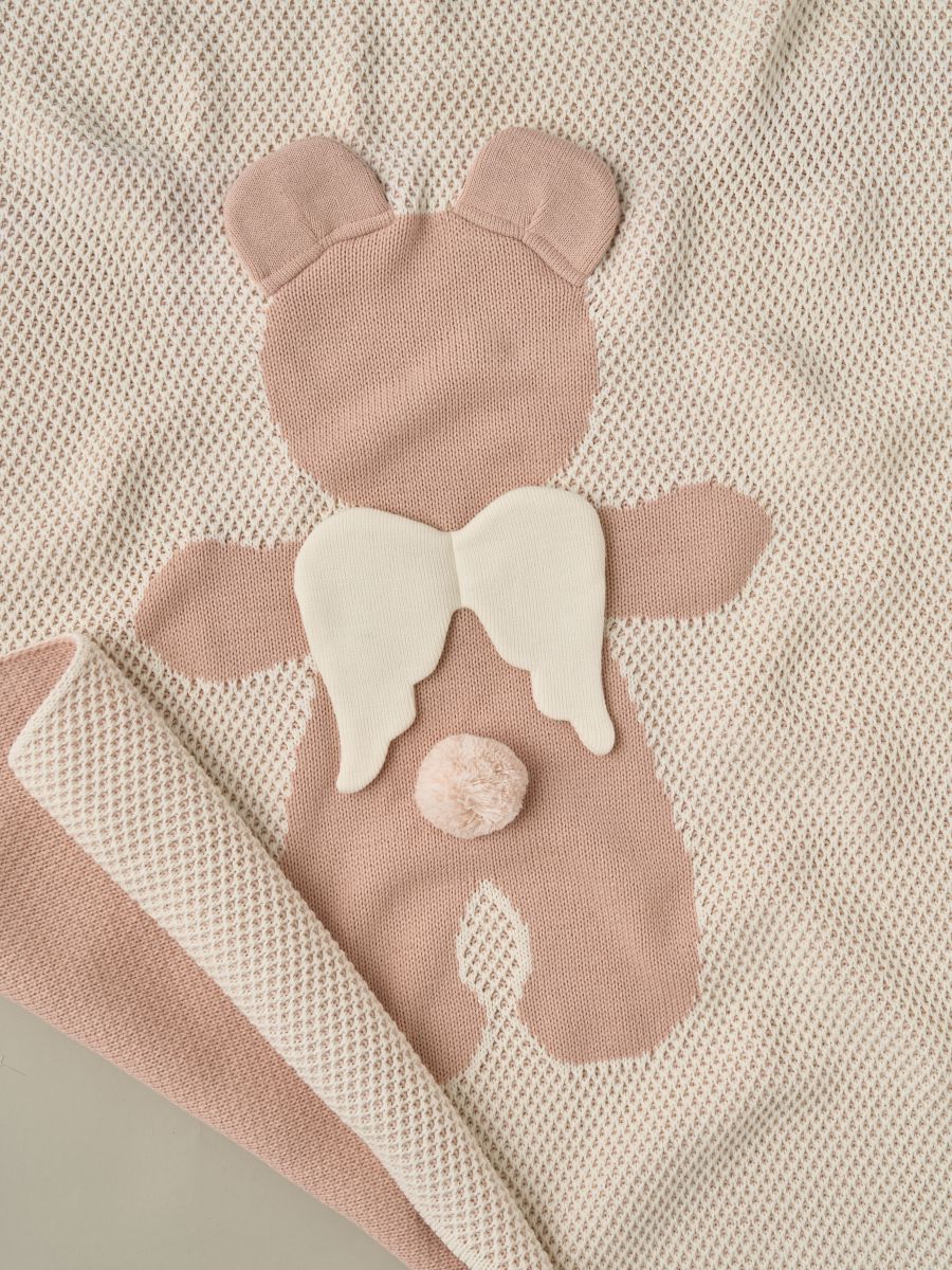 04251 Плед двойной вязки "Мишка Ангел" 120*90 (цв. пудра+крем)