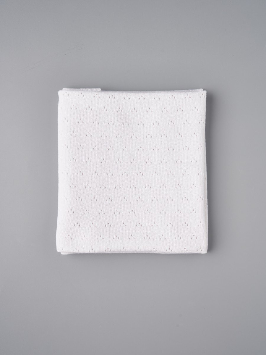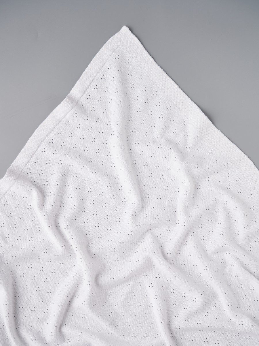 Ажурный детский плед 90×90 из 100% хлопка — идеальный выбор для новорождённых и малышей. Натуральный материал делает его гипоаллергенным, безопасным и дышащим, а ажурный узор придаёт изделию лёгкость и изысканный вид. Такой плед для новорождённого подходит для выписки из роддома, прогулок в коляске, сна в кроватке или автолюльке, а также станет красивым аксессуаром для фотосессии.