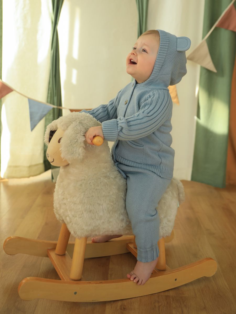 Выберите вязаный комплект с капюшоном и брюками-джоггерами — стильное решение, которое сочетает комфорт, тепло и очаровательный дизайн.