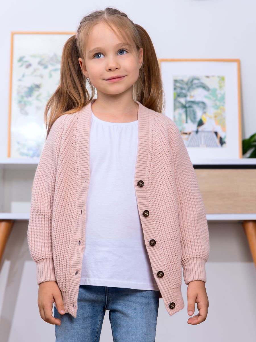 Выберите вязаный кардиган — уютное и универсальное решение для стильных образов вашего ребёнка.