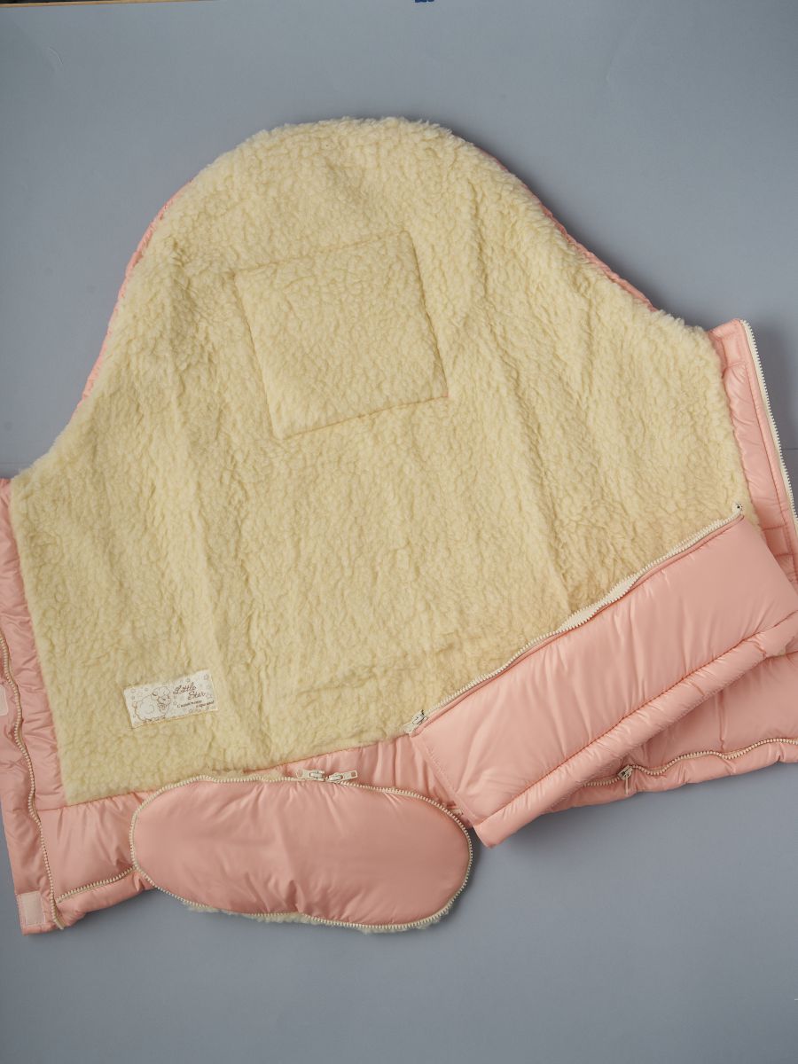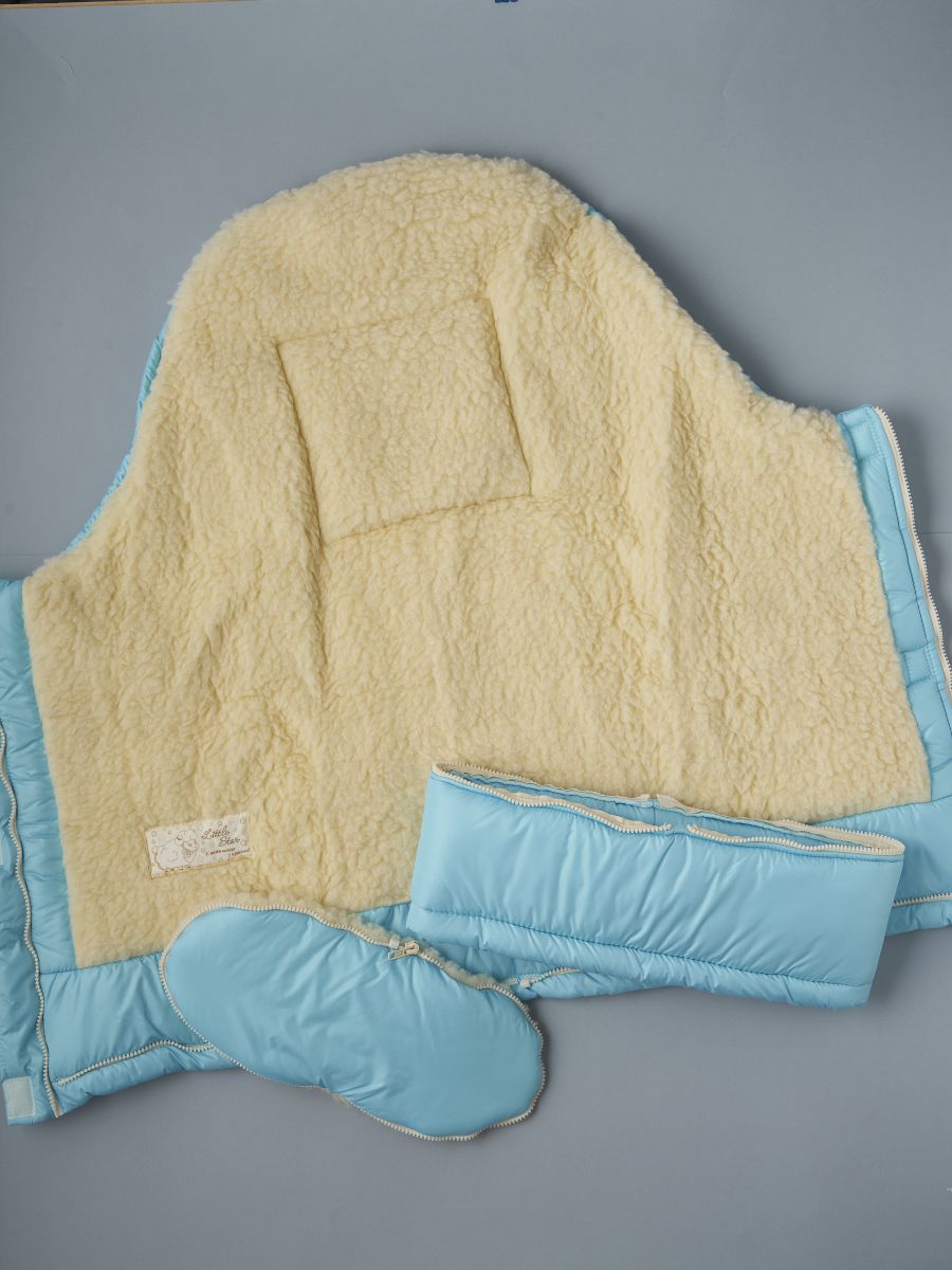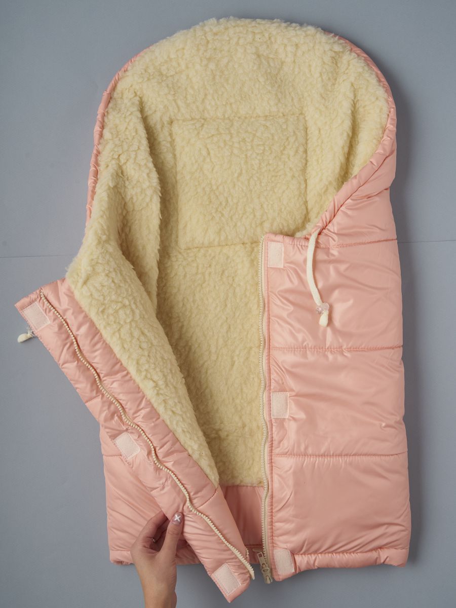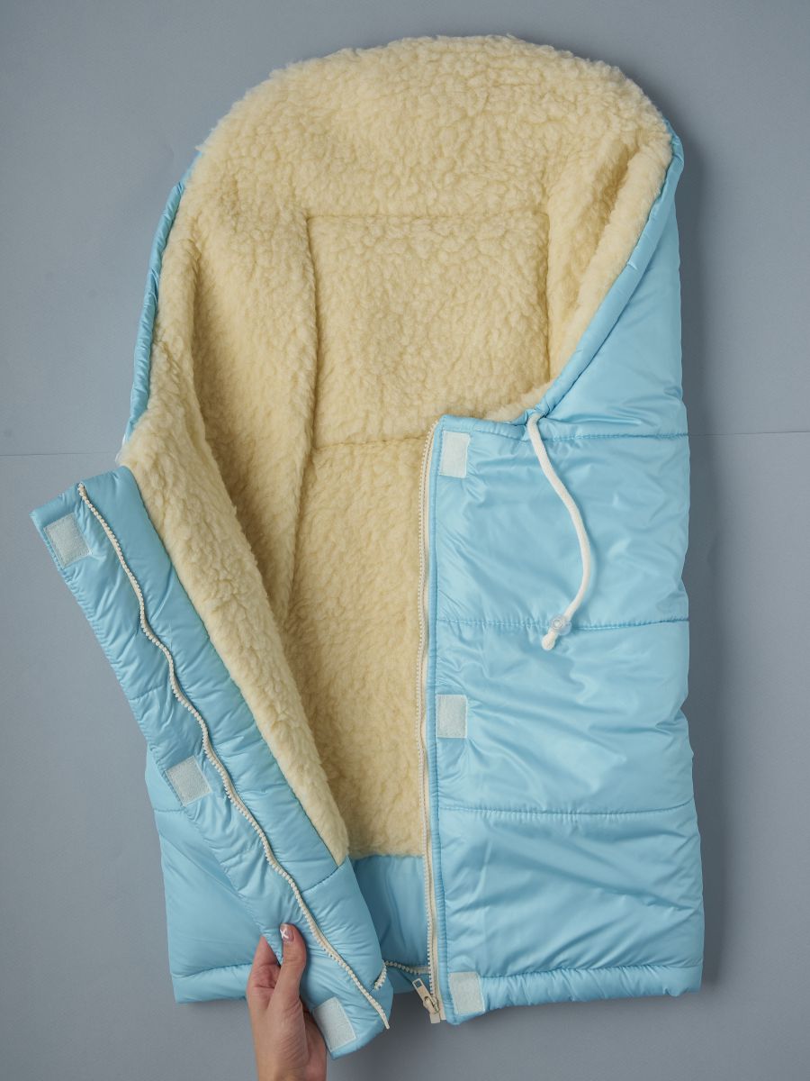 Зимний конверт в коляску с овечьей шерстью — это надёжная защита малыша во время зимних прогулок. Верх выполнен из прочной курточной плащевой ткани, которая защищает от ветра и влаги, а подкладка из натуральной овечьей шерсти на хлопковой основе (70% мех, 30% хлопок) обеспечивает тепло и уют даже в сильный мороз.