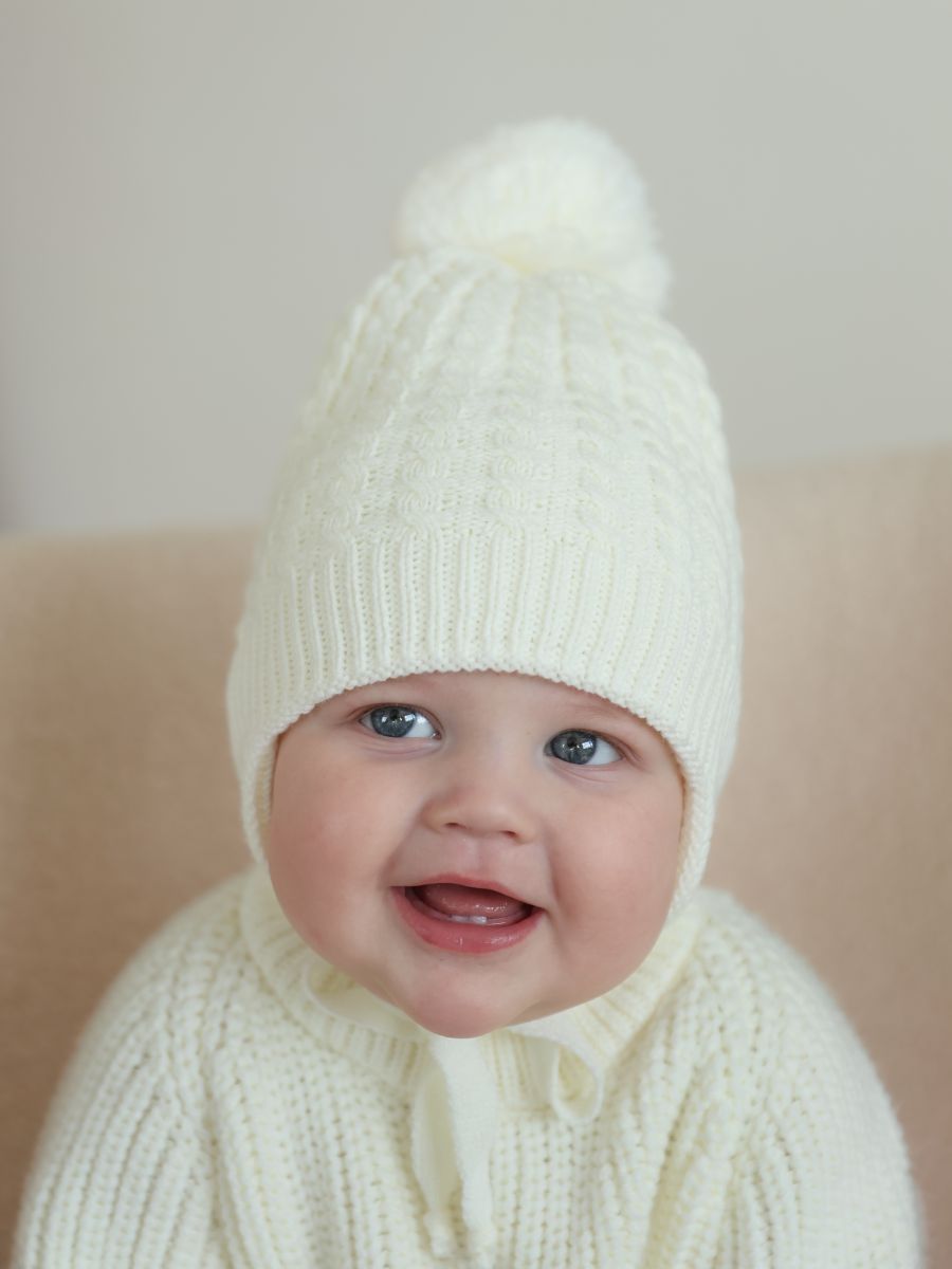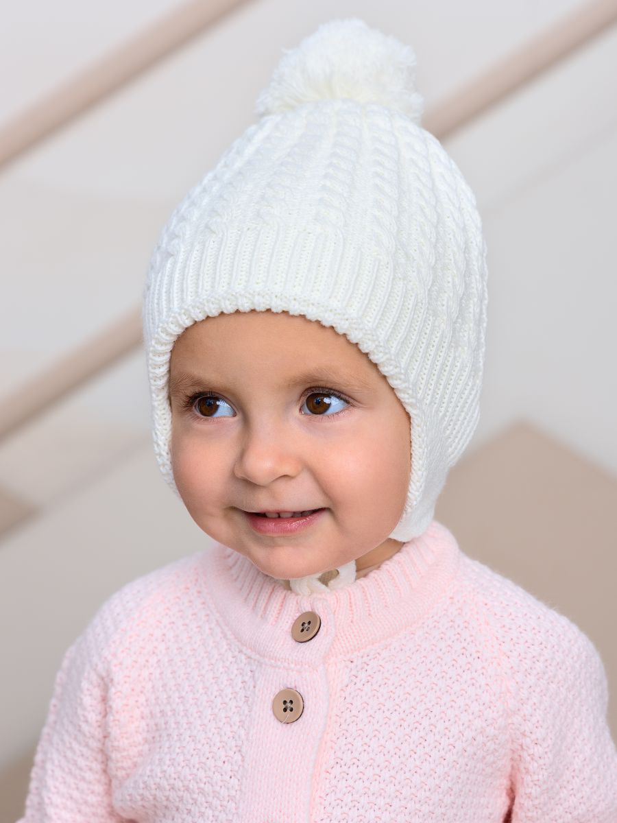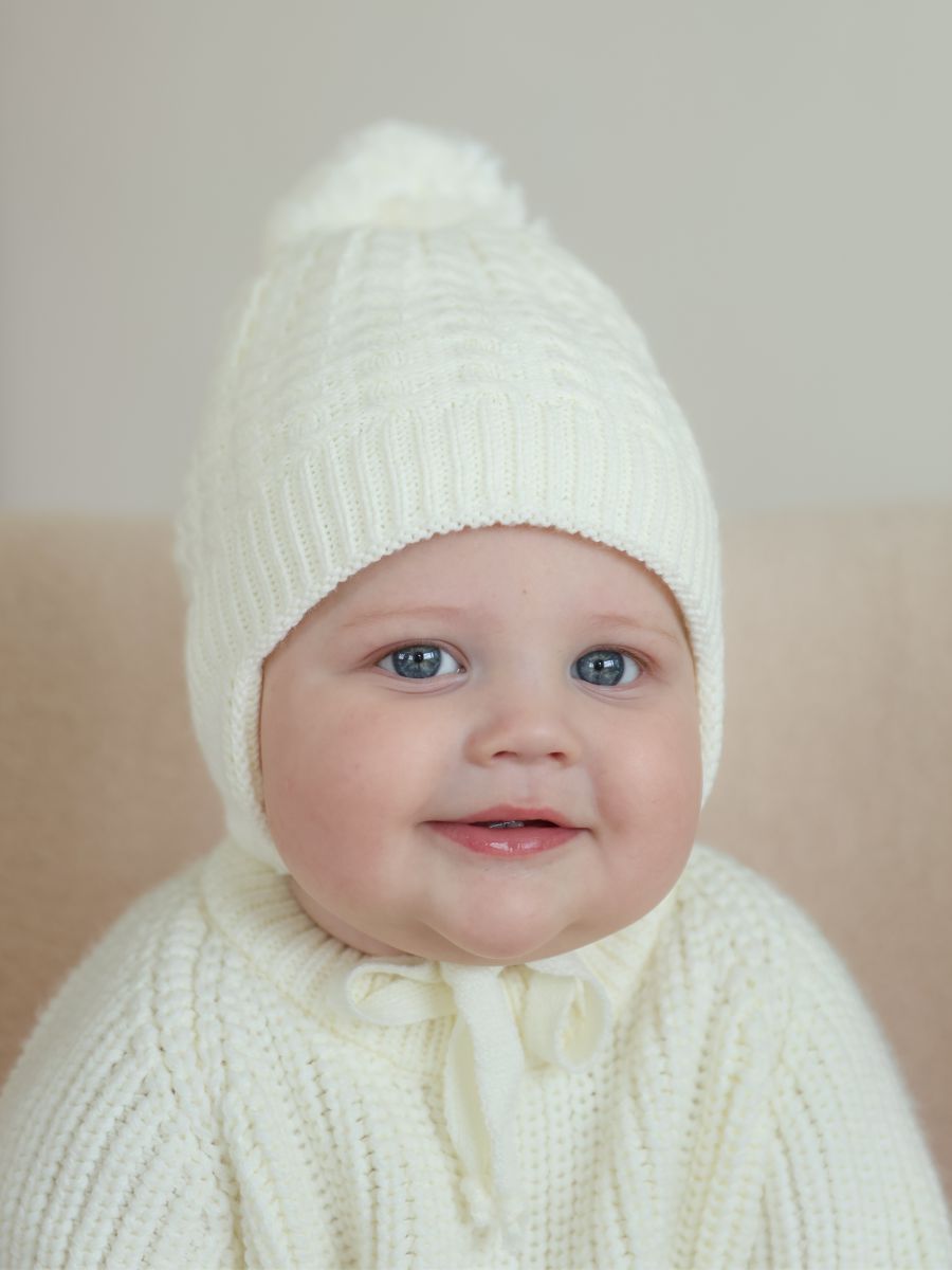 ОБРАТИТЕ ВНИМАНИЕ! Оттенки на предметном фото и фото на ребенке могут незначительно отличаться из-за различности в световых приборов использованных при съемке. Фото на ребенке - при дневном освещении. Фото предметное - с использованием искуственного освещения. Цветокоррекция и фильтры не использованы! Зимняя шапочка для прогулок в погоду до -30˚С. Шапочка выполнена из двухслойной вязки, отлично прилегает по головке малыша, закрывает ушки, лобик и прекрасно защищает от холода.