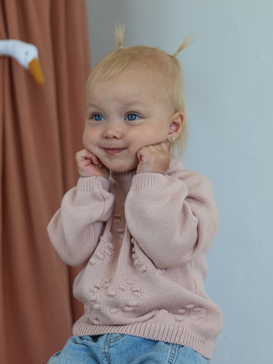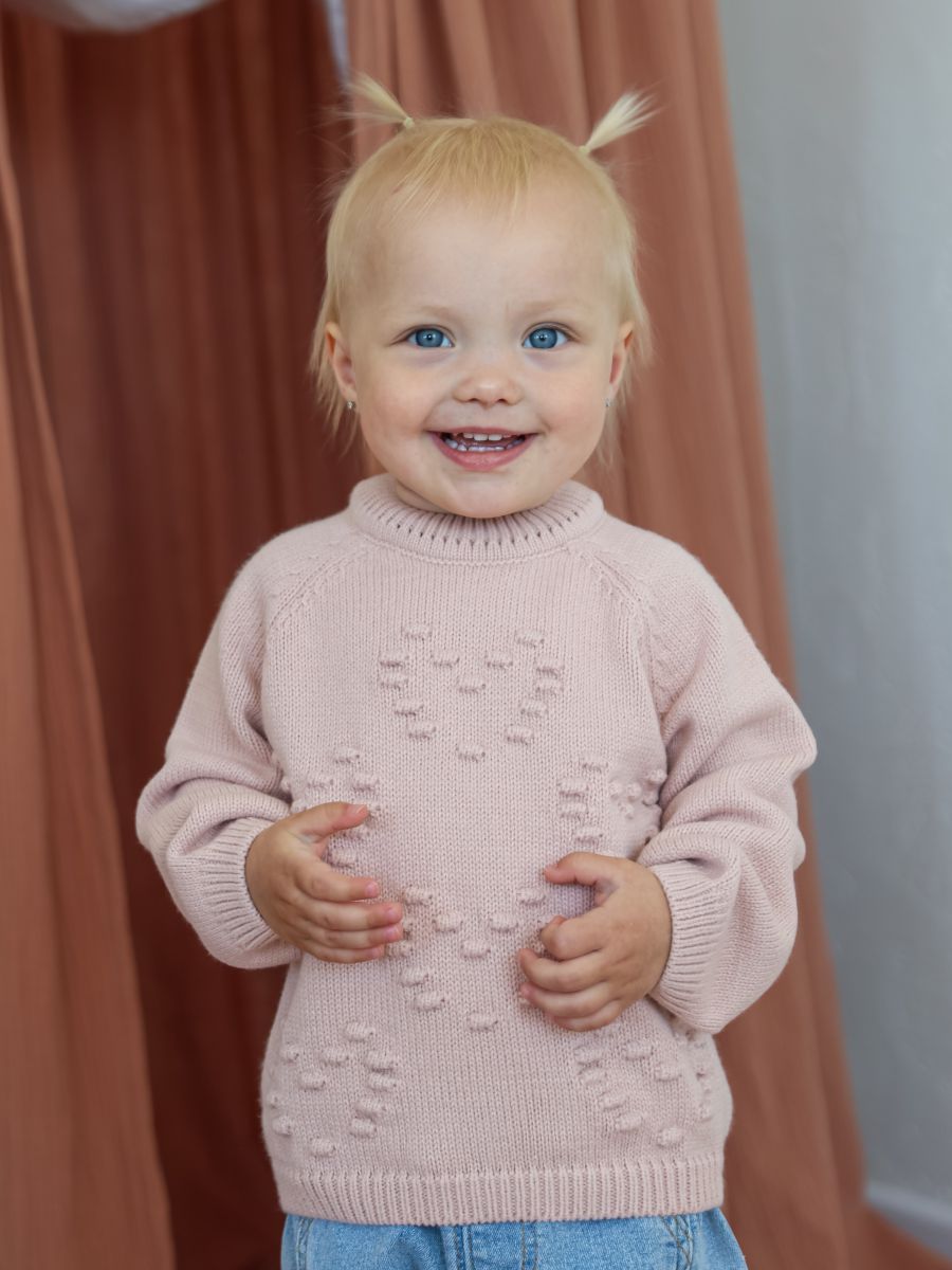 Выберите джемпер с узором "сердечки" — красивое и практичное решение для стильных и уютных образов вашей малышки.