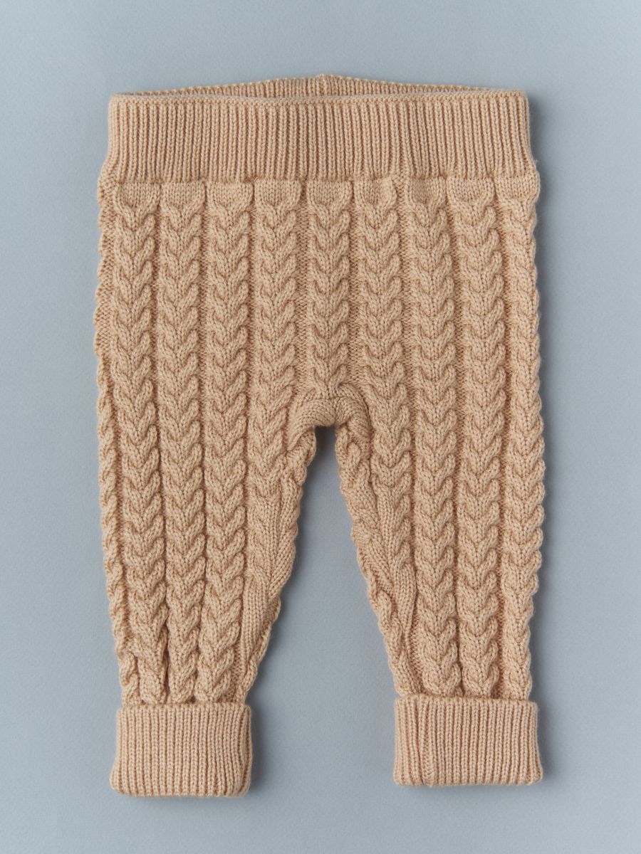 Вязаные штанишки — уютная модель для малышей, выполненная из мягкой пряжи (20% хлопок, 30% шерсть, 50% ПАН). Стильный рельефный узор «косы» делает изделие нарядным и теплым, а эластичный пояс и манжеты обеспечивают удобную посадку и свободу движений.