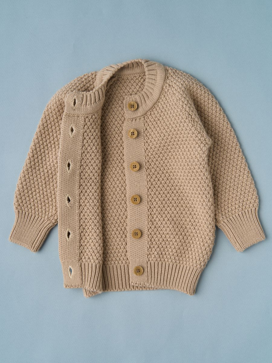 Выберите вязаный кардиган — уютное и универсальное решение для стильных образов вашего ребёнка.
