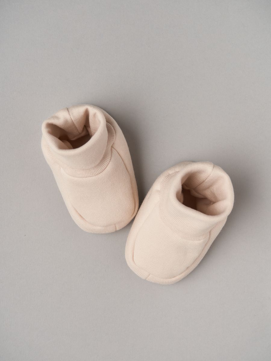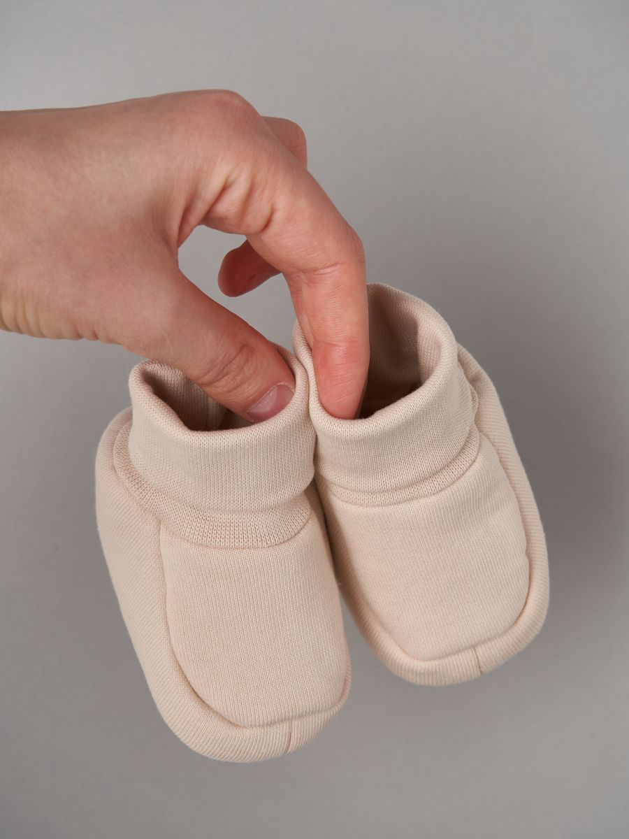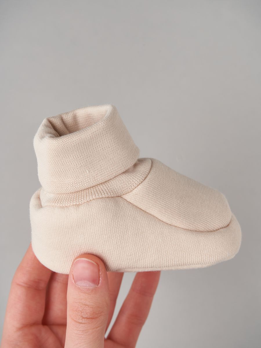 Детские пинетки из футера с начёсом — уютная и практичная обувь для малышей, которая надёжно согревает ножки. Верх выполнен из футера с начёсом (80% хлопок, 20% полиэстер), а подклад изготовлен из 100% хлопка, что обеспечивает мягкость, комфорт и безопасность для чувствительной кожи ребёнка.