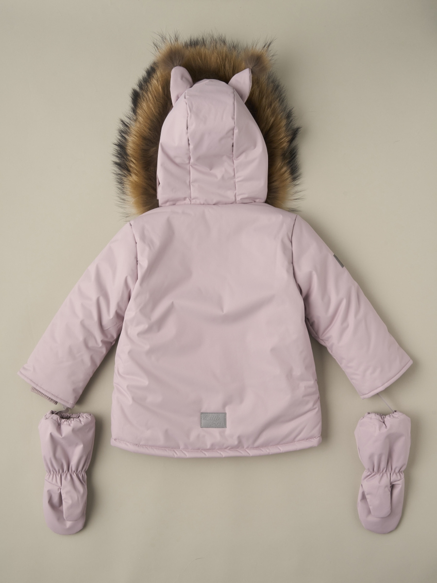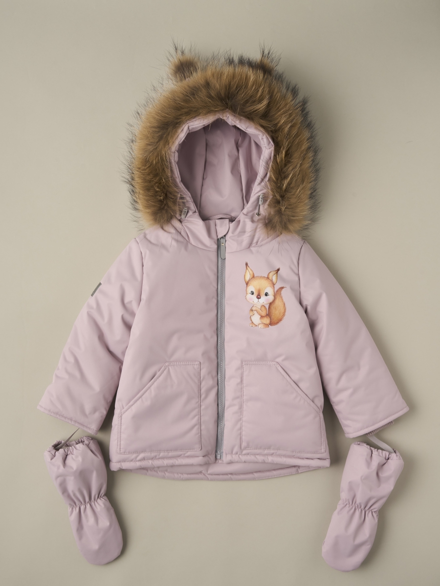 Верх изделия выполнен из мембранной ткани с защитой от воды и ветра, что делает комплект устойчивым к влаге и снегу. Натуральный мех на опушке капюшона защищает лицо от ветра и придаёт образу стильный акцент. Дополнительные светоотражающие элементы повышают безопасность в тёмное время суток. Варежки-краги на флисе входят в комплект, обеспечивая защиту рук от холода и снега.