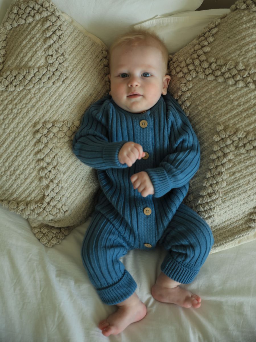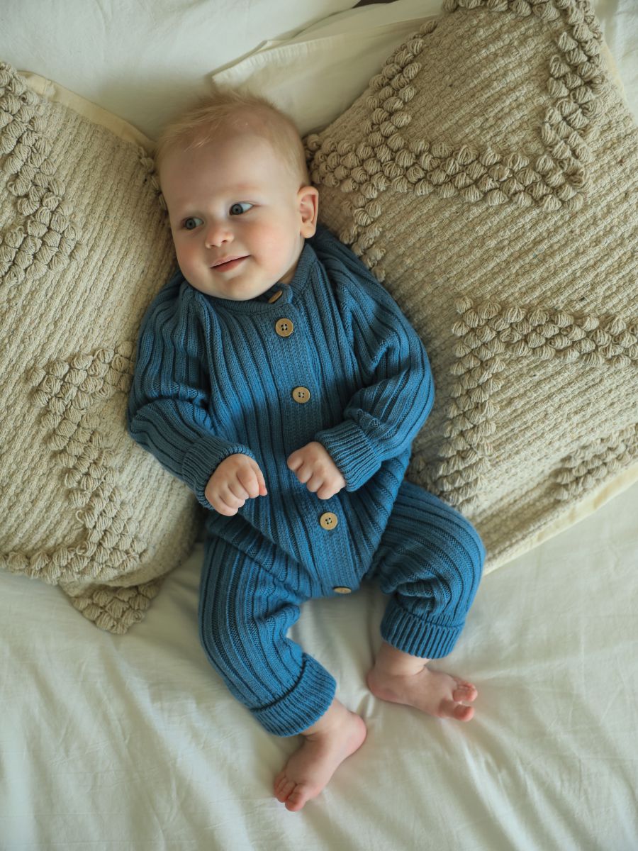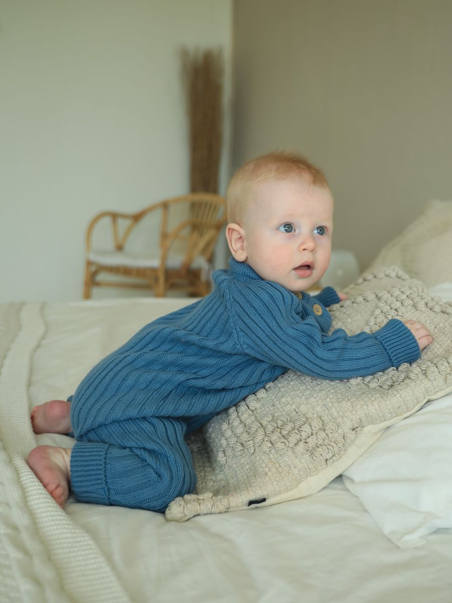 Вязаный растущий комбинезон — стильное и практичное изделие для малышей. Изготовлен из мягкой и тёплой пряжи (20% хлопок, 30% шерсть, 50% ПАН), которая хорошо сохраняет тепло и обеспечивает комфорт в прохладное время года. Благодаря «растущему» крою комбинезон служит дольше: манжеты на рукавах и штанинах можно отворачивать, подстраивая под рост ребёнка.