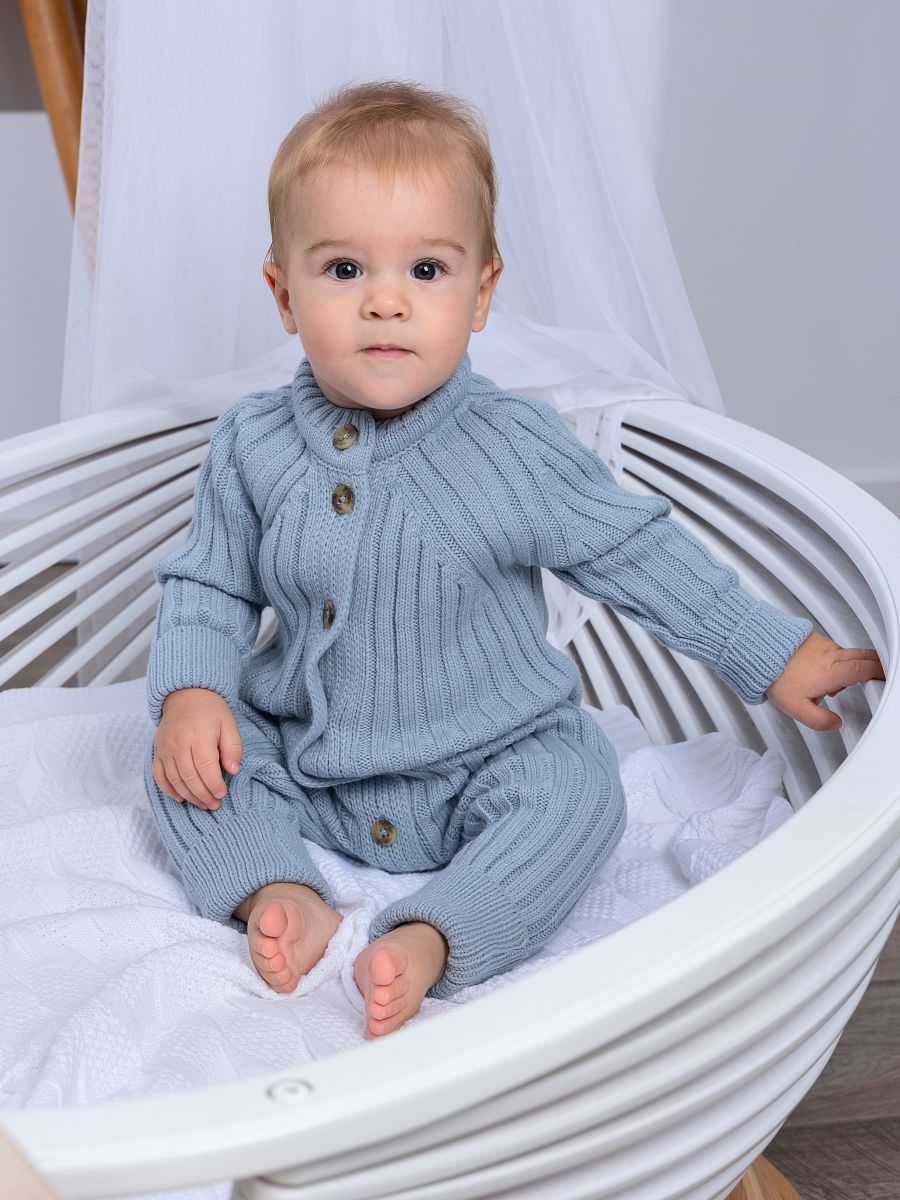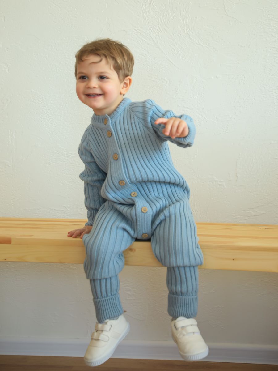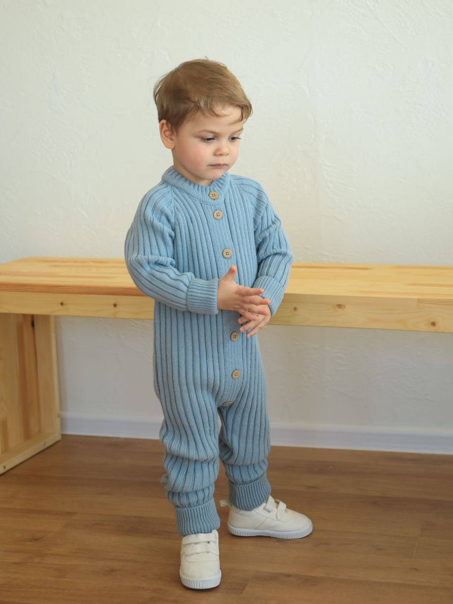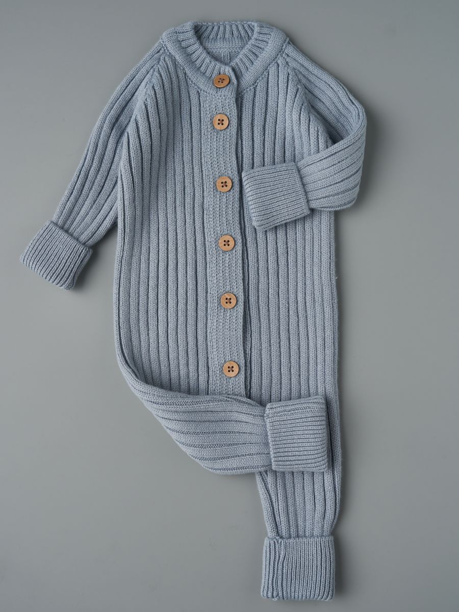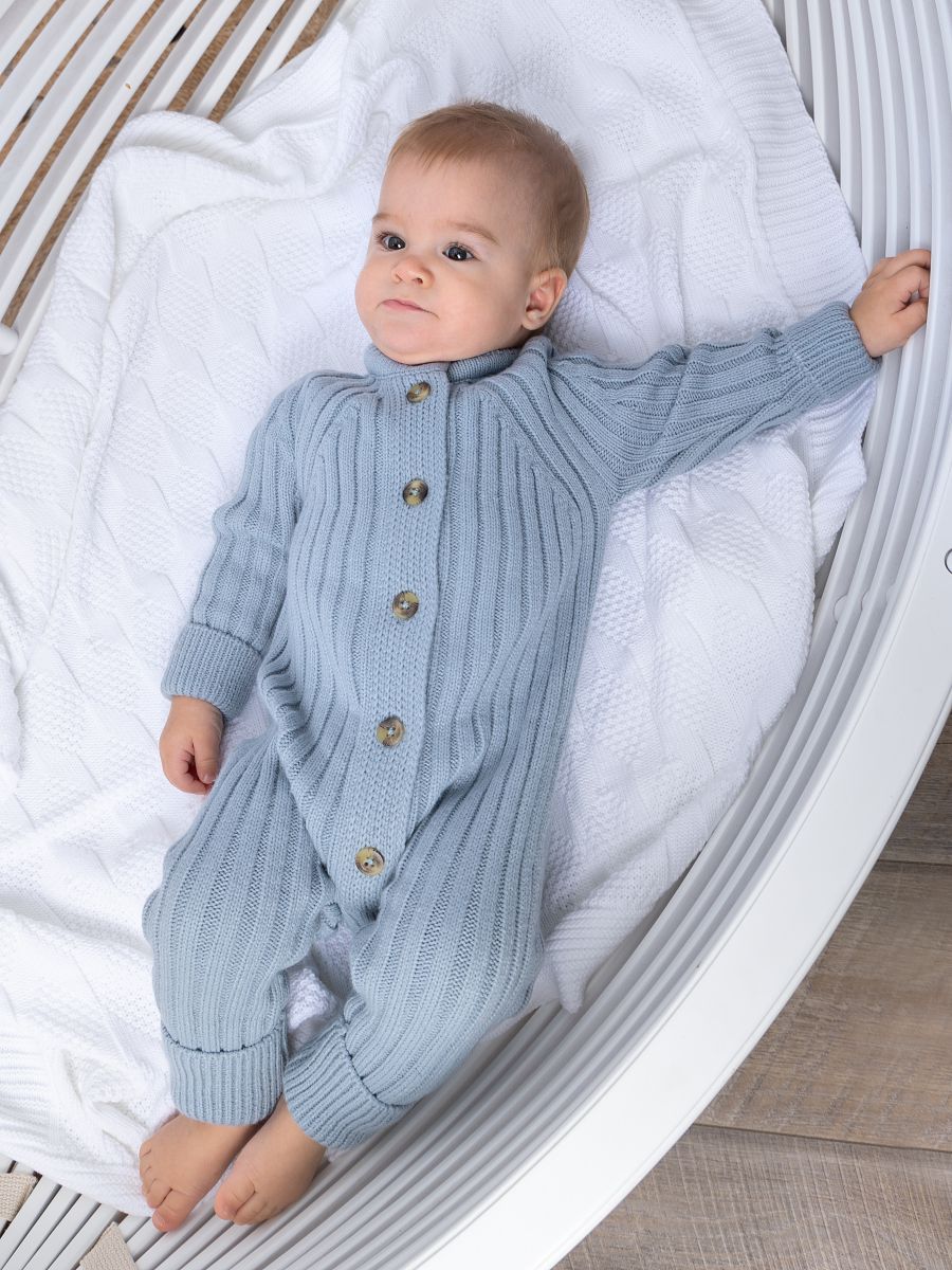 Вязаный растущий комбинезон — стильное и практичное изделие для малышей. Изготовлен из мягкой и тёплой пряжи (20% хлопок, 30% шерсть, 50% ПАН), которая хорошо сохраняет тепло и обеспечивает комфорт в прохладное время года. Благодаря «растущему» крою комбинезон служит дольше: манжеты на рукавах и штанинах можно отворачивать, подстраивая под рост ребёнка.