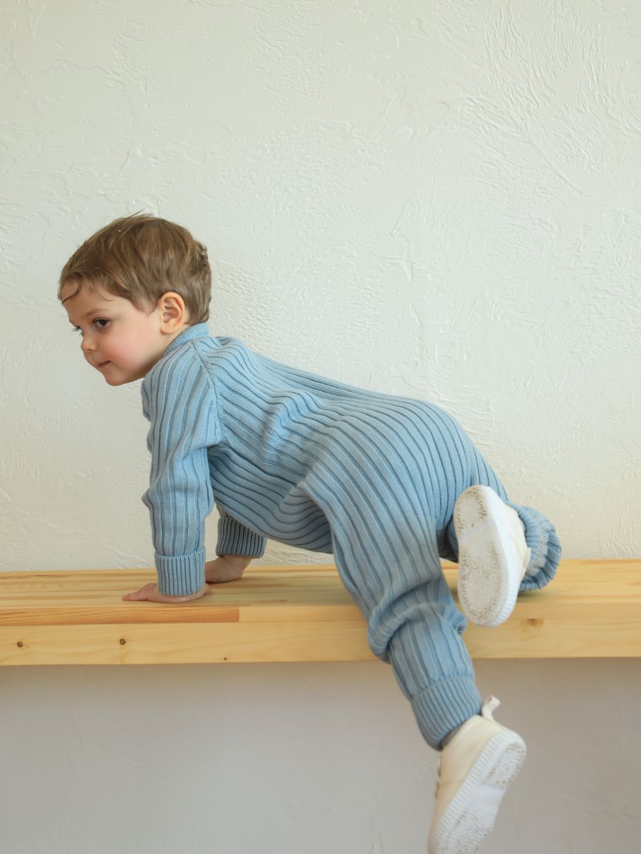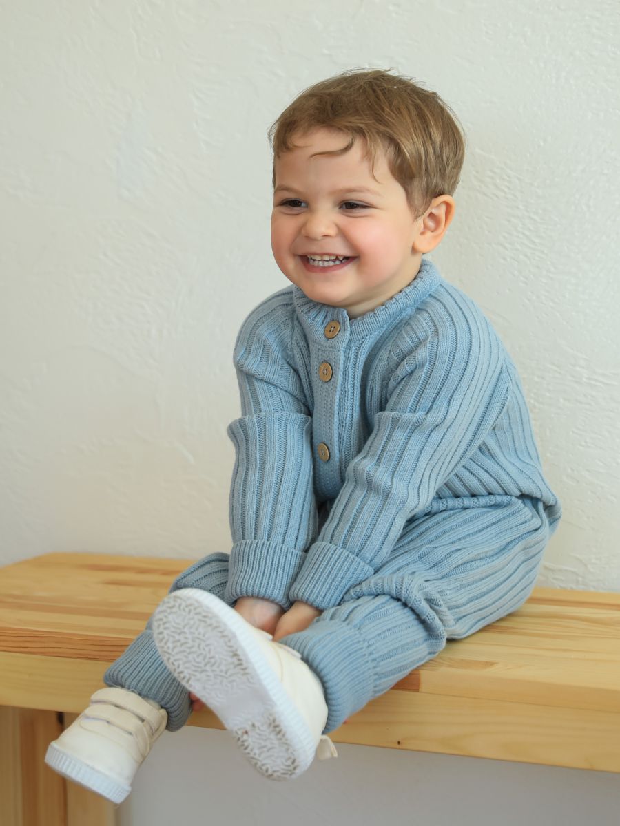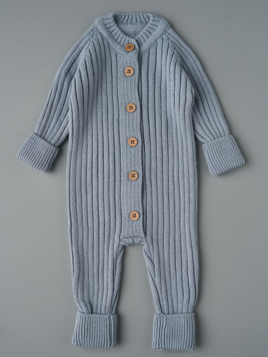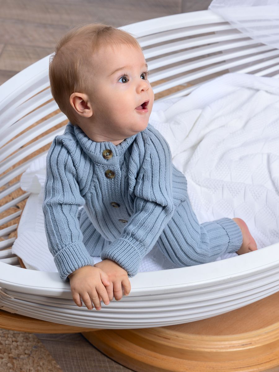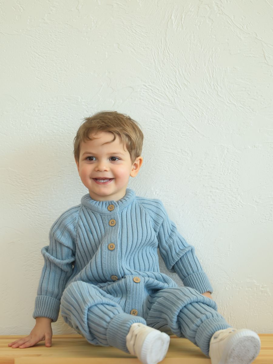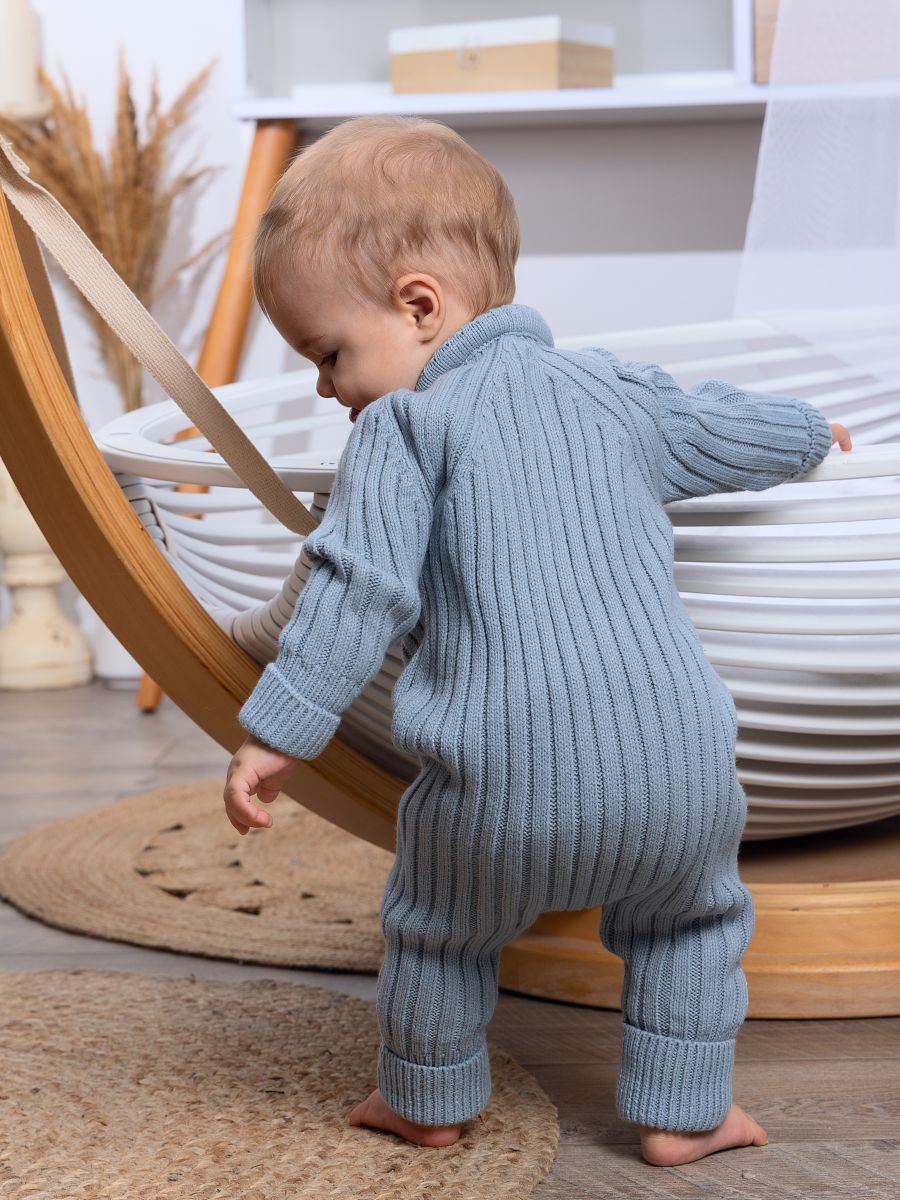Вязаный растущий комбинезон — стильное и практичное изделие для малышей. Изготовлен из мягкой и тёплой пряжи (20% хлопок, 30% шерсть, 50% ПАН), которая хорошо сохраняет тепло и обеспечивает комфорт в прохладное время года. Благодаря «растущему» крою комбинезон служит дольше: манжеты на рукавах и штанинах можно отворачивать, подстраивая под рост ребёнка.