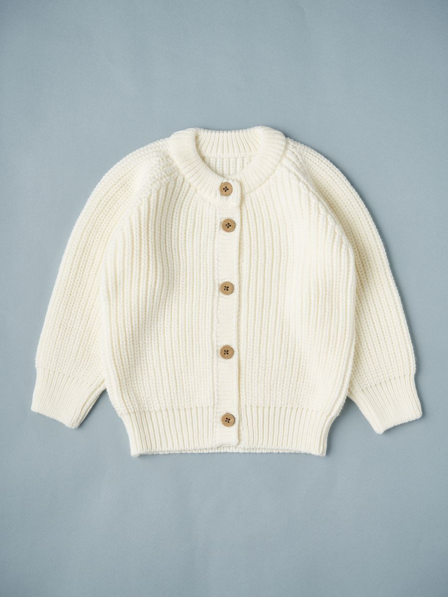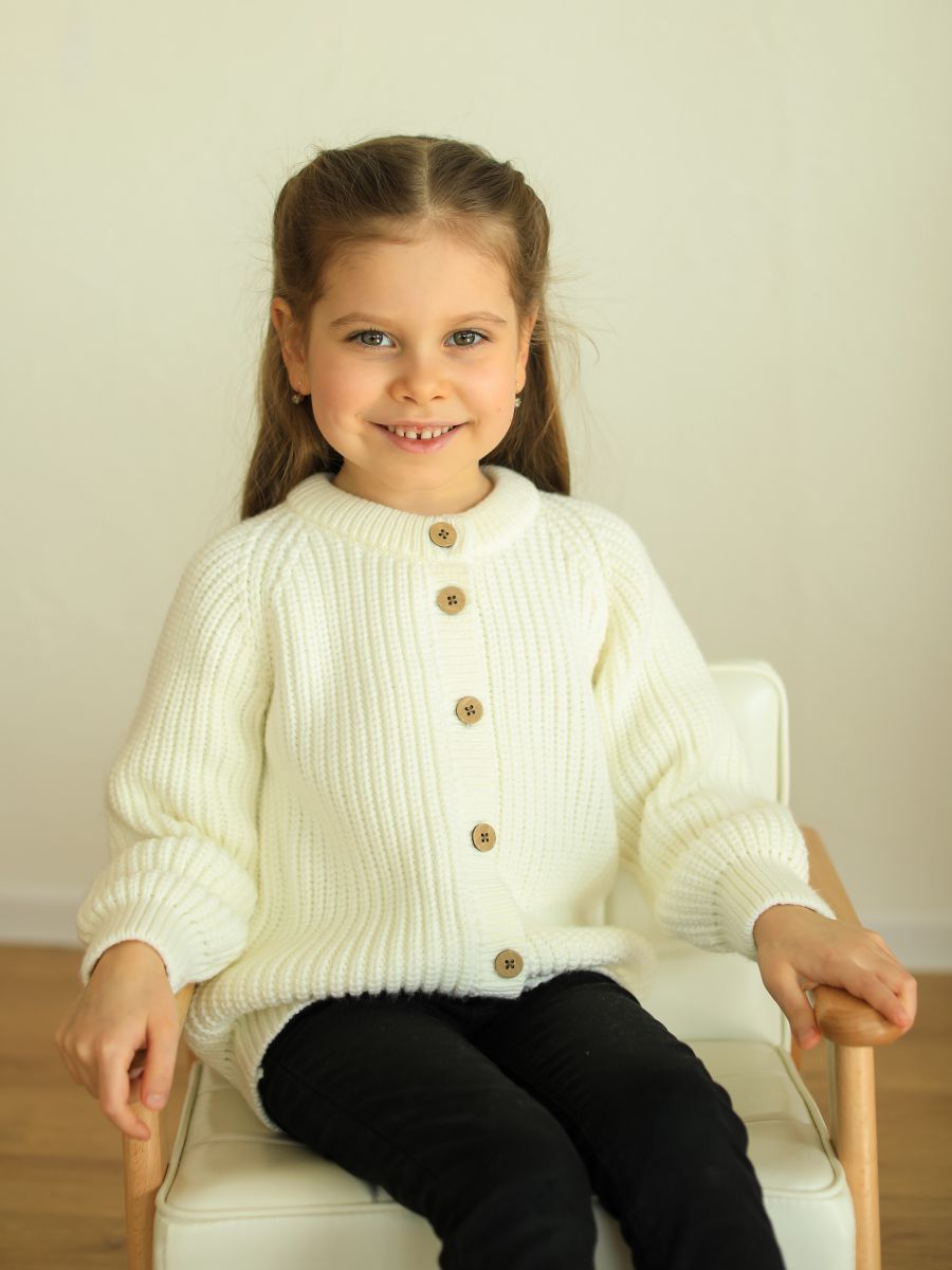 Выберите вязаный кардиган — уютное и универсальное решение для стильных образов вашего ребёнка.