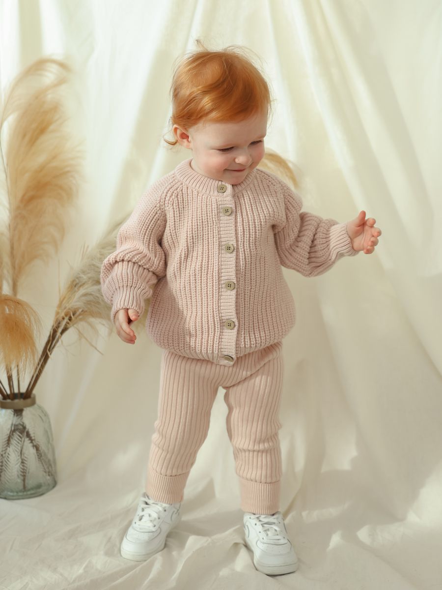Выберите вязаный кардиган — уютное и универсальное решение для стильных образов вашего ребёнка.