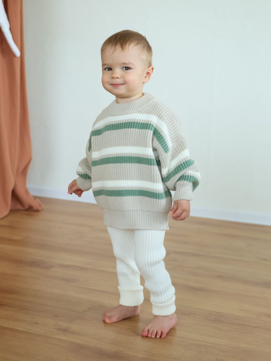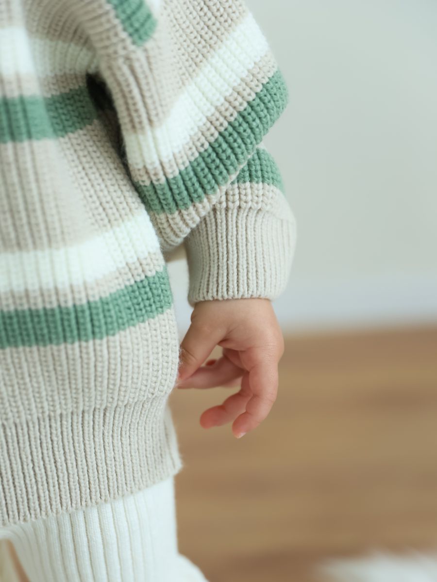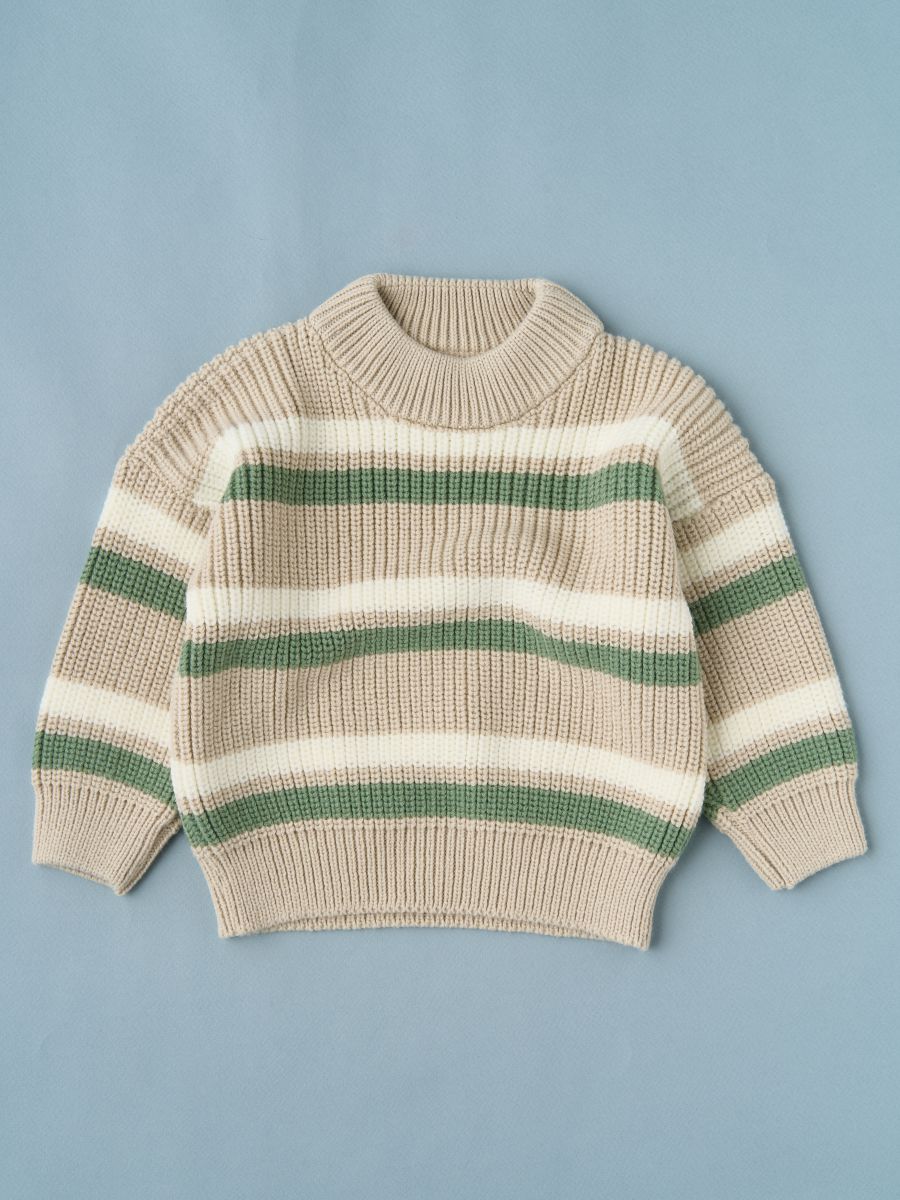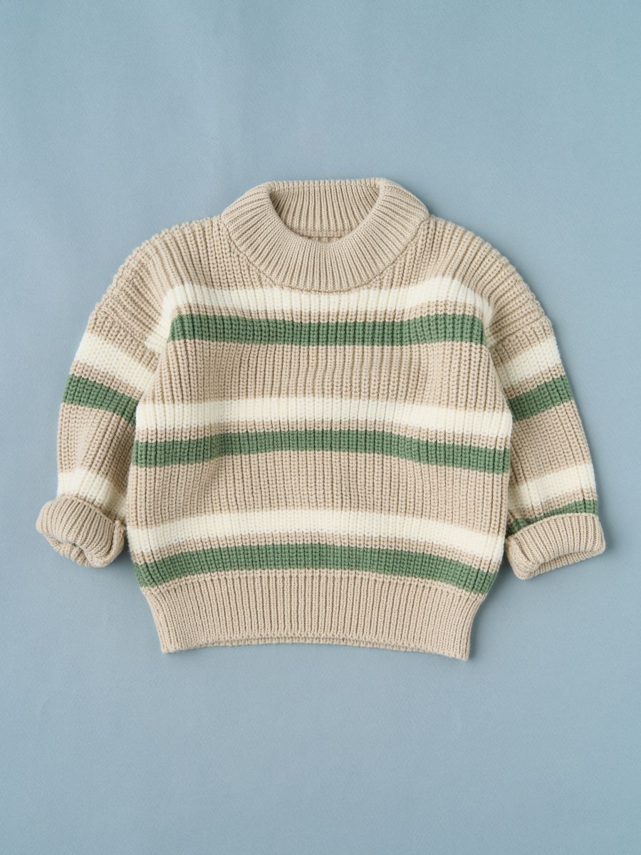 004477 Джемпер вязаный "Полоски" цв. Бежево-зеленый