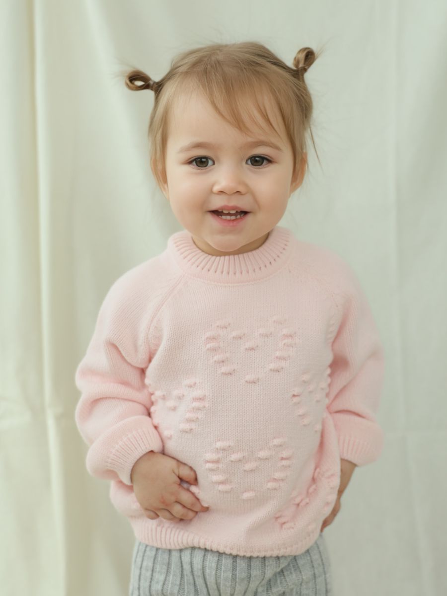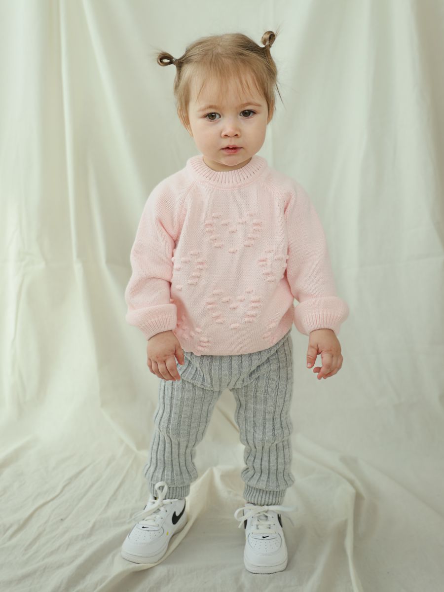 Выберите джемпер с узором "сердечки" — красивое и практичное решение для стильных и уютных образов вашей малышки.