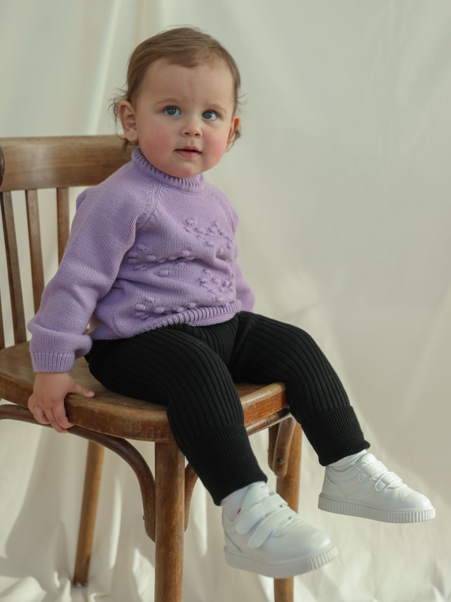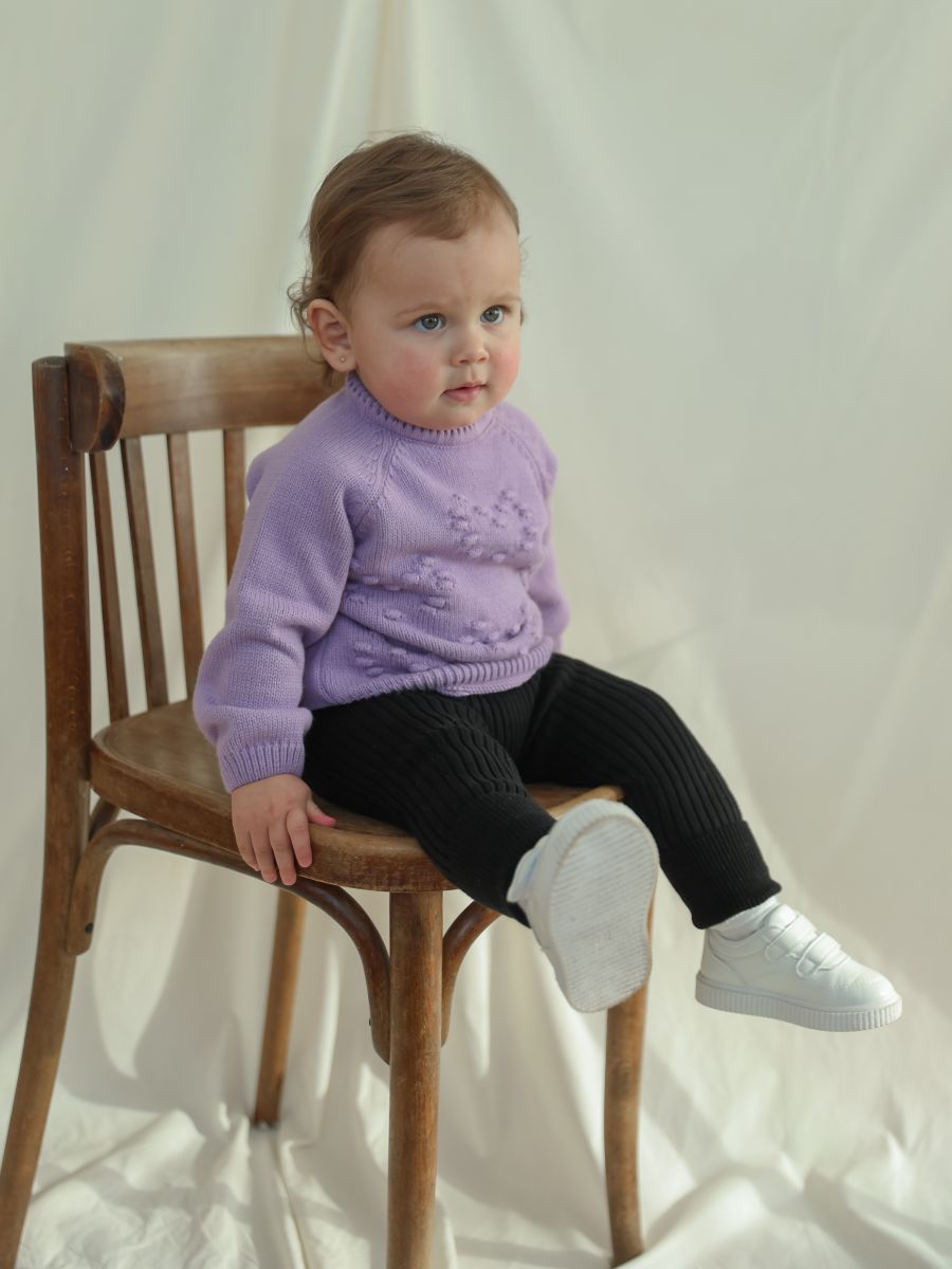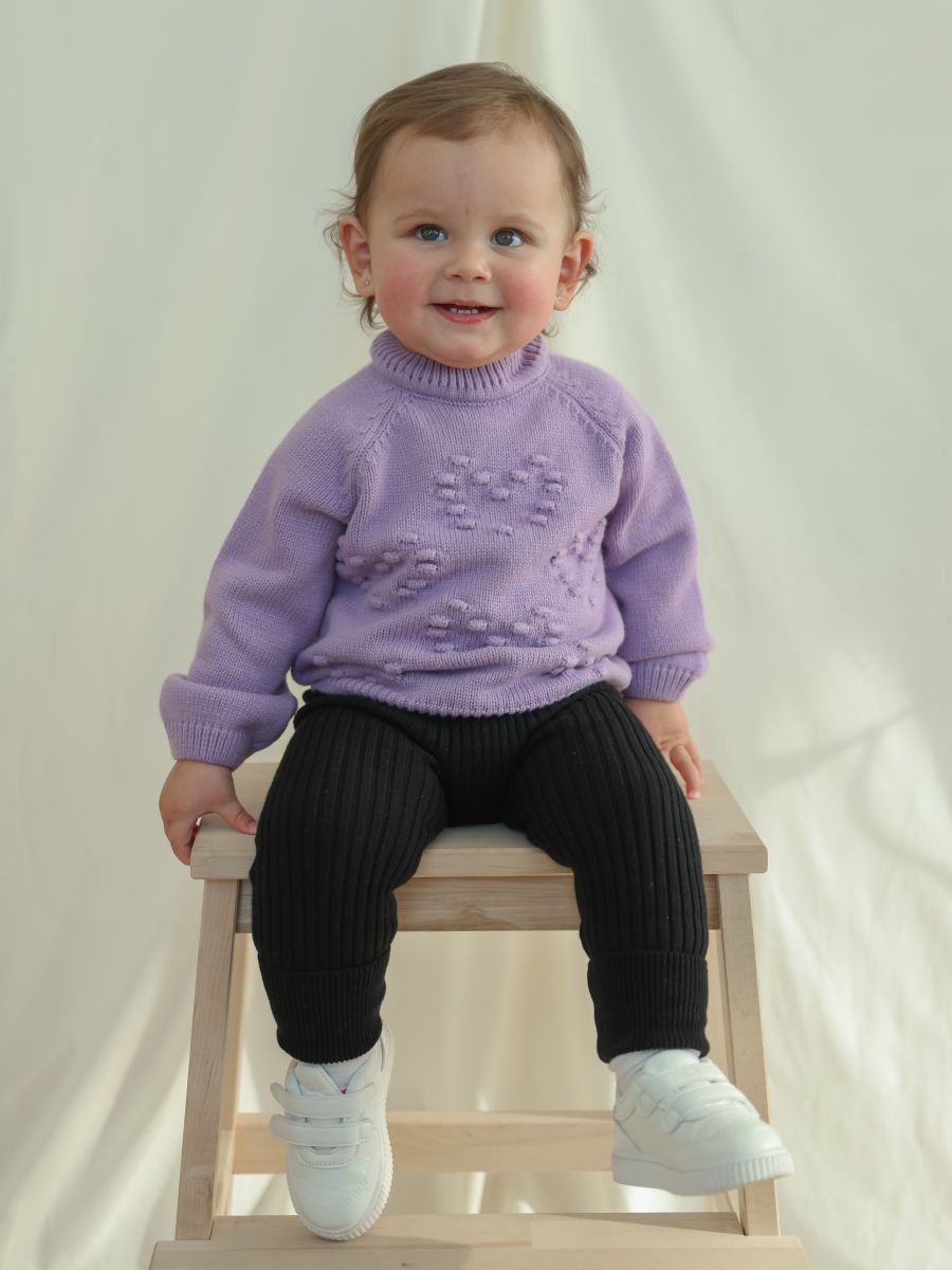 Выберите джемпер с узором "сердечки" — красивое и практичное решение для стильных и уютных образов вашей малышки.