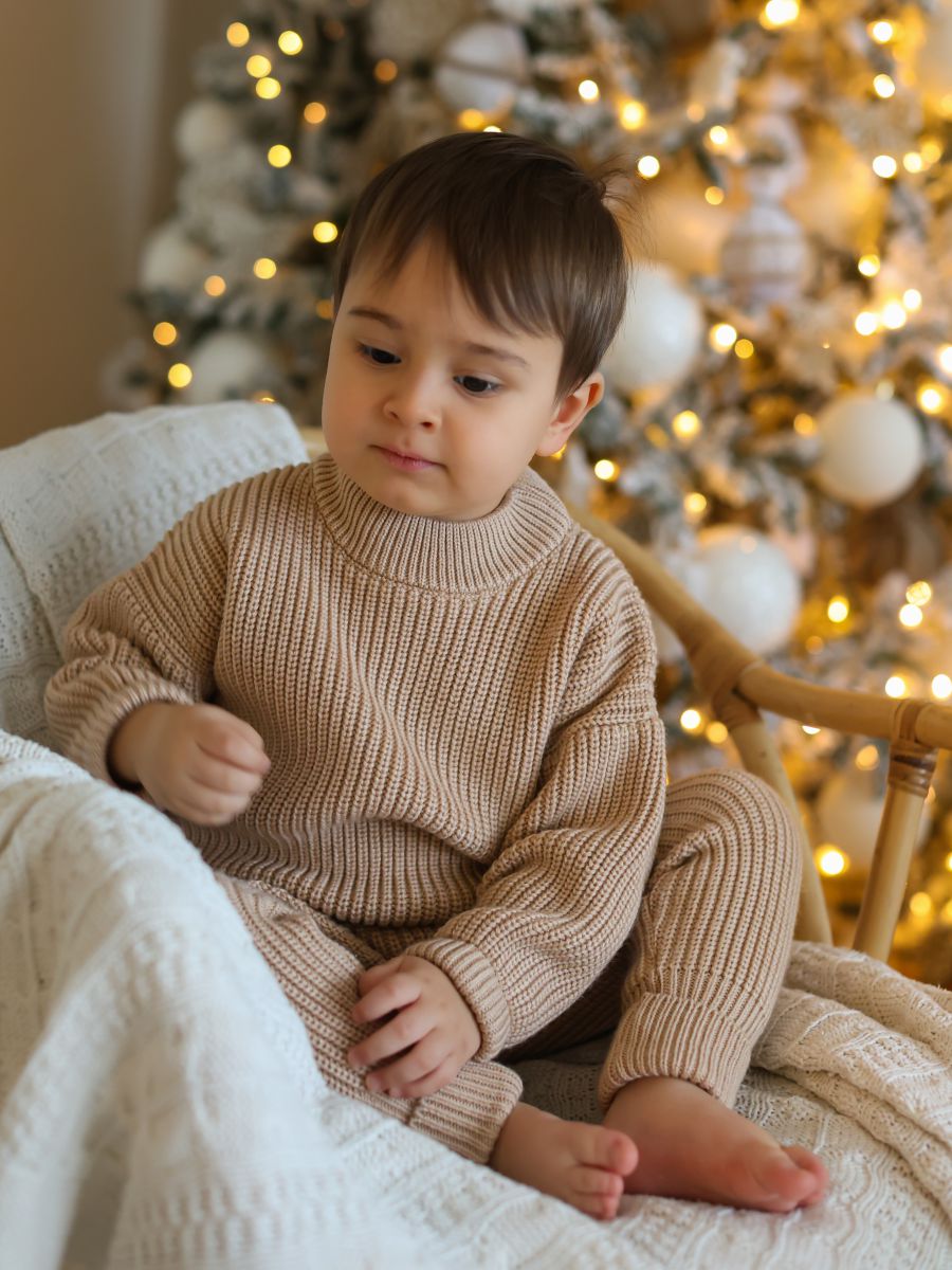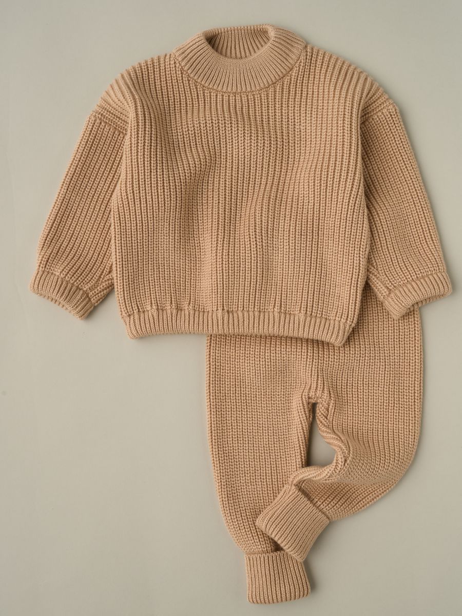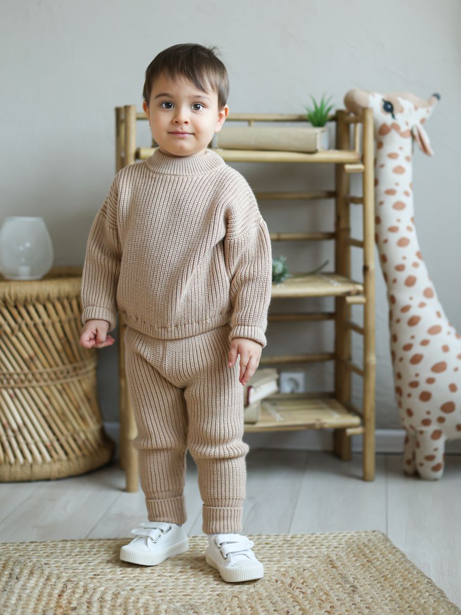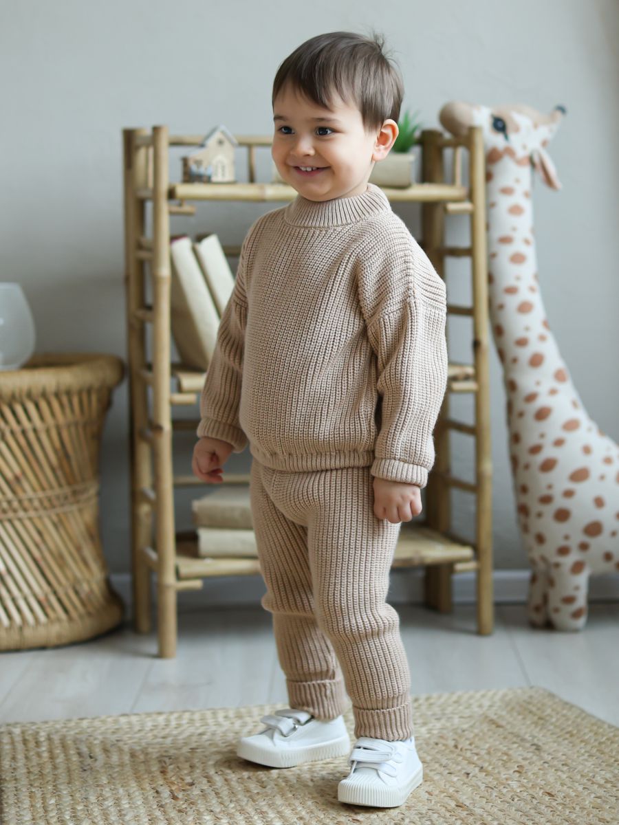 Выберите вязаный комплект джемпер и брюки — идеальное сочетание комфорта, тепла и элегантного стиля для вашего малыша.