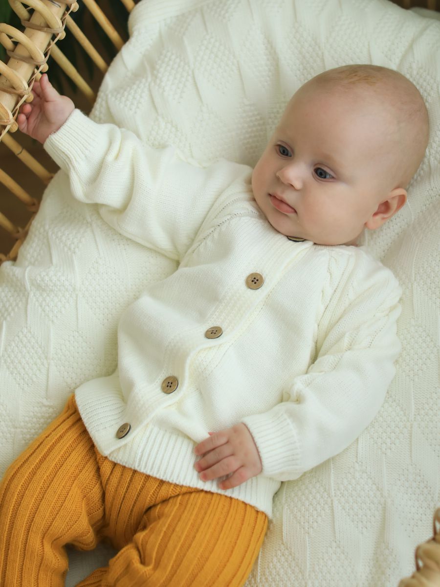 Выберите вязаный кардиган — уютное и универсальное решение для стильных образов вашего ребёнка.