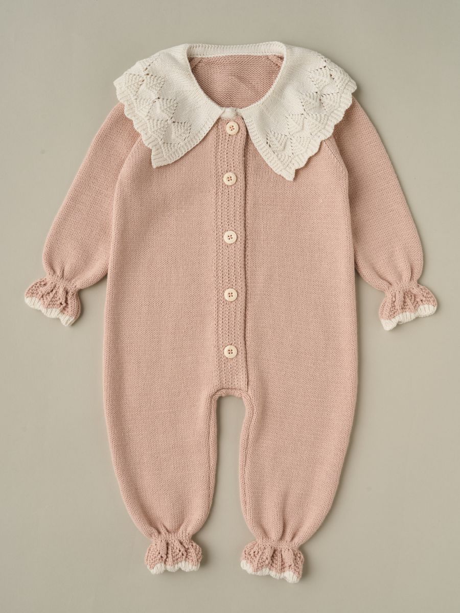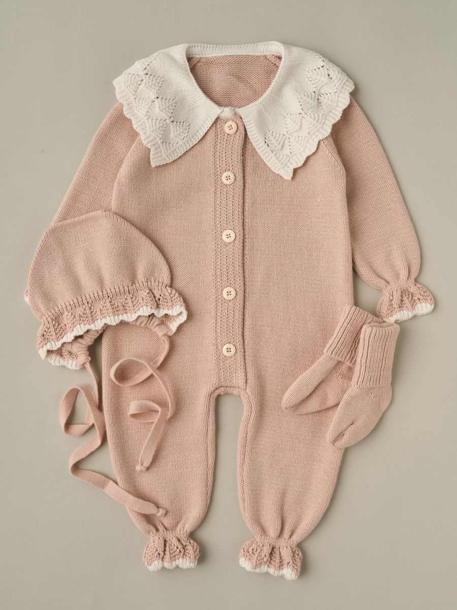 —807333 (нк) Костюм «Классика» (комбез с воротником, чепчик, носочки) цв. Пудровый+кремовый
