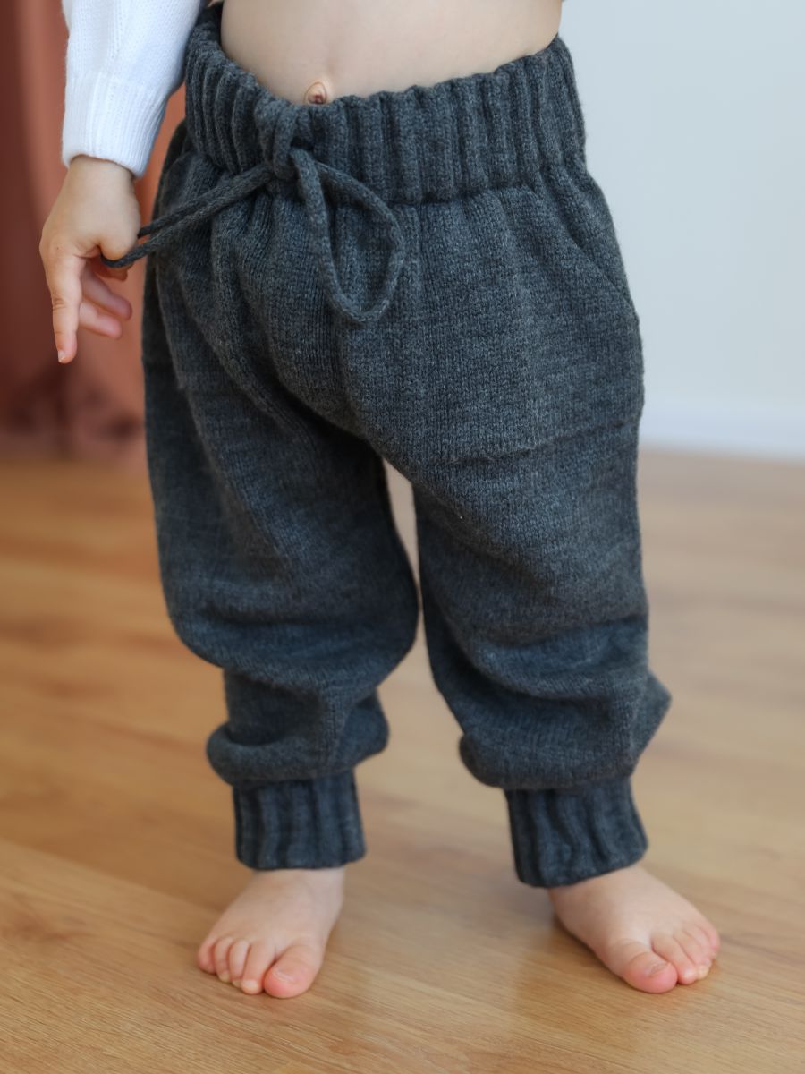 Выберите вязаные штанишки с поясом на завязках — удобное и тёплое решение для повседневного комфорта вашего малыша.